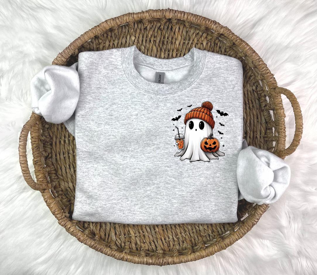 Little Ghost Ice Coffee Sweatshirt, Halloween Ghost Coffee Shirt, Bougie Ghost Shirt, Spooky Season, Cute Ghost Sweatshirt, Halloween Crewneck, Sweatshirt, Hoodie