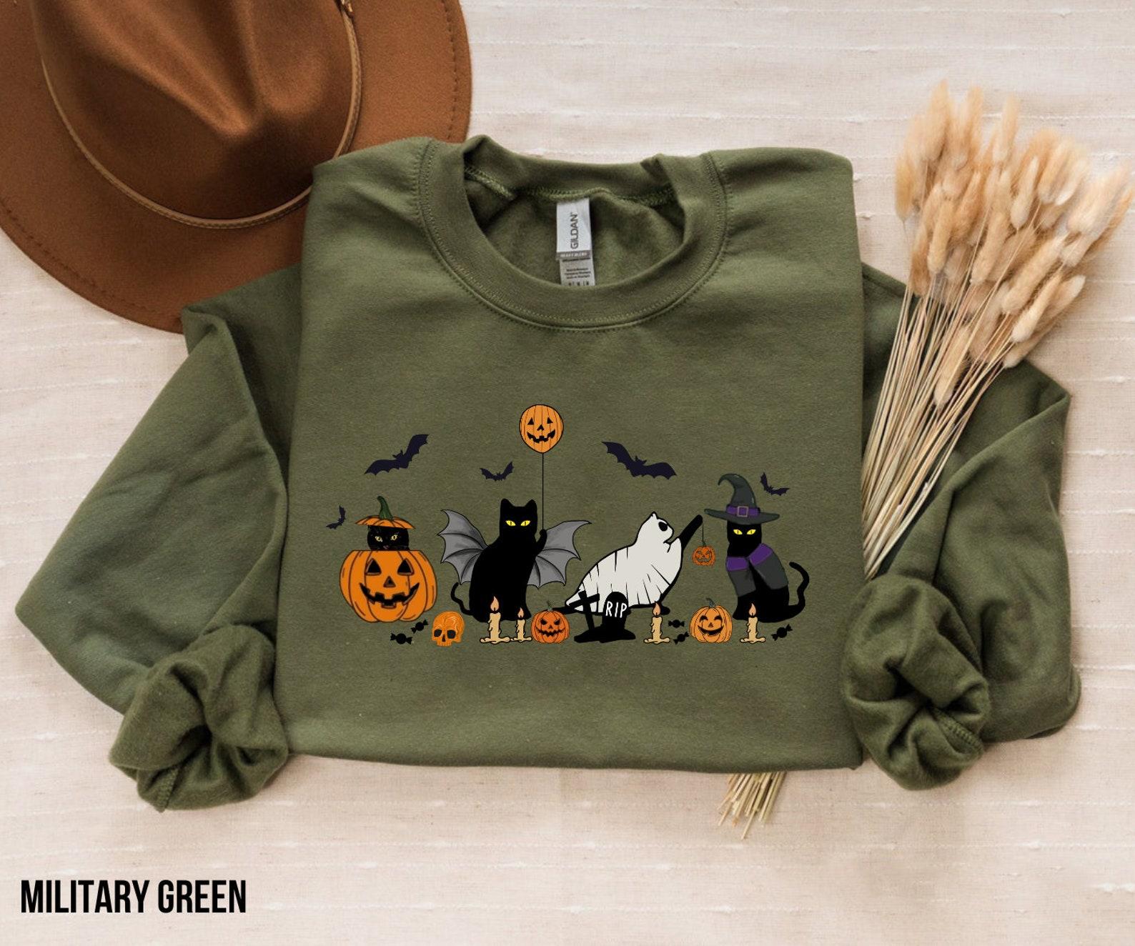 Cat Halloween Sweatshirt, Ghost Cat Shirt Sweatshirt, Unisex Good Gift For Everyone