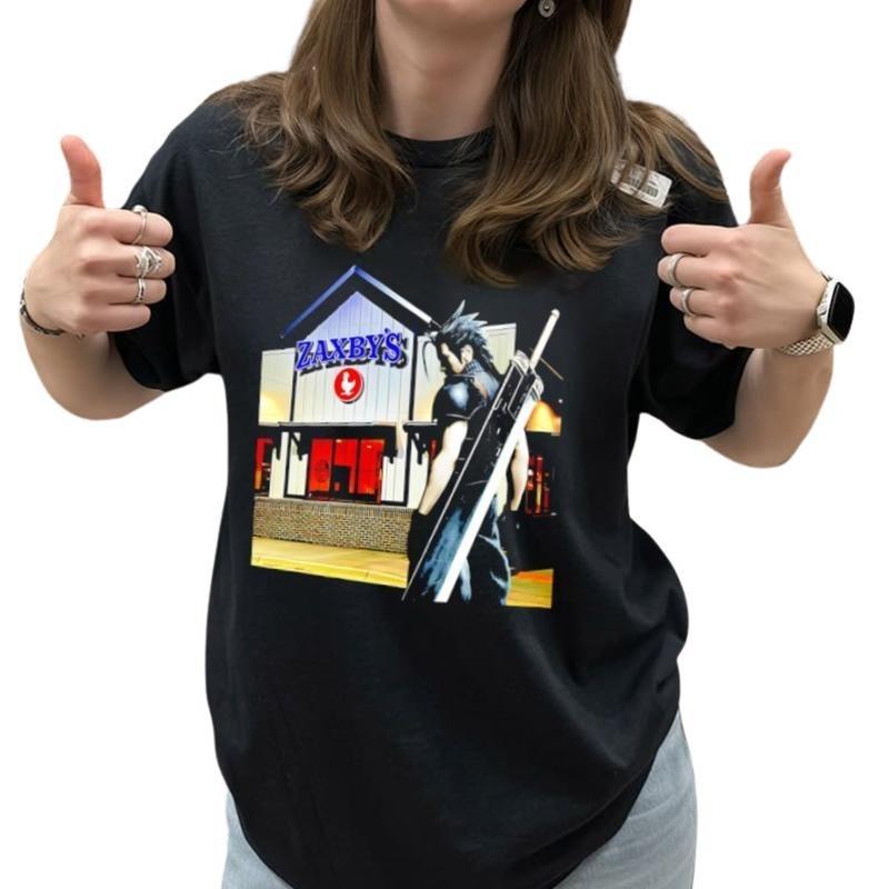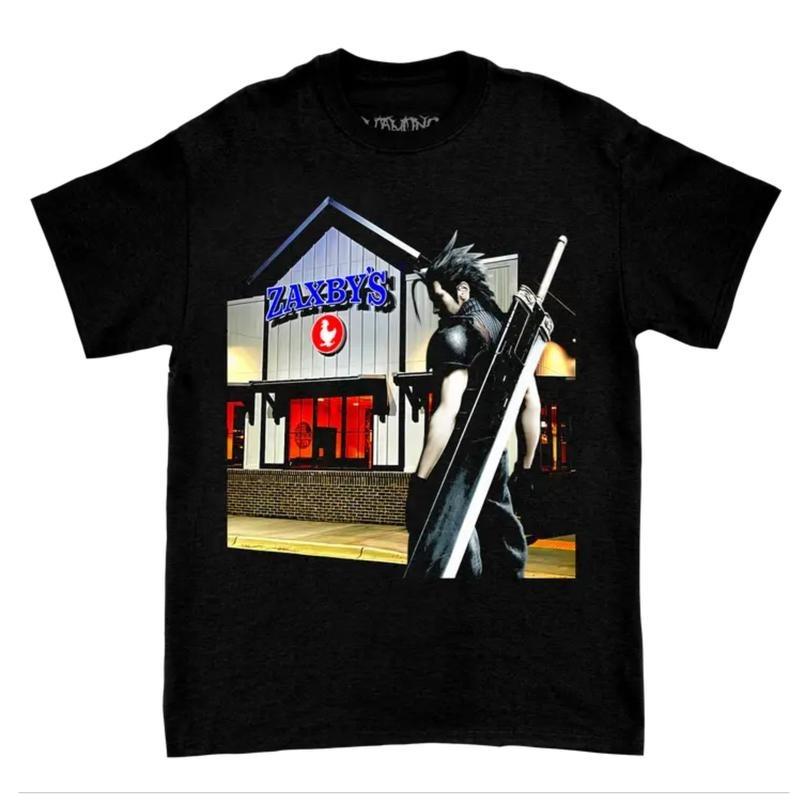 Final Fantasy 7 Print Shirt, Zack Fair Graphic Tee, Zaxby's Restaurant Collab T-shirt, Video Game Fan Apparel, Cotton unisex T-shirt, Trendy Shirt, Anime Gaming Shirt for Men and Women, 90s Style Crew Neck T-shirt, Vintage Game Lover Gift