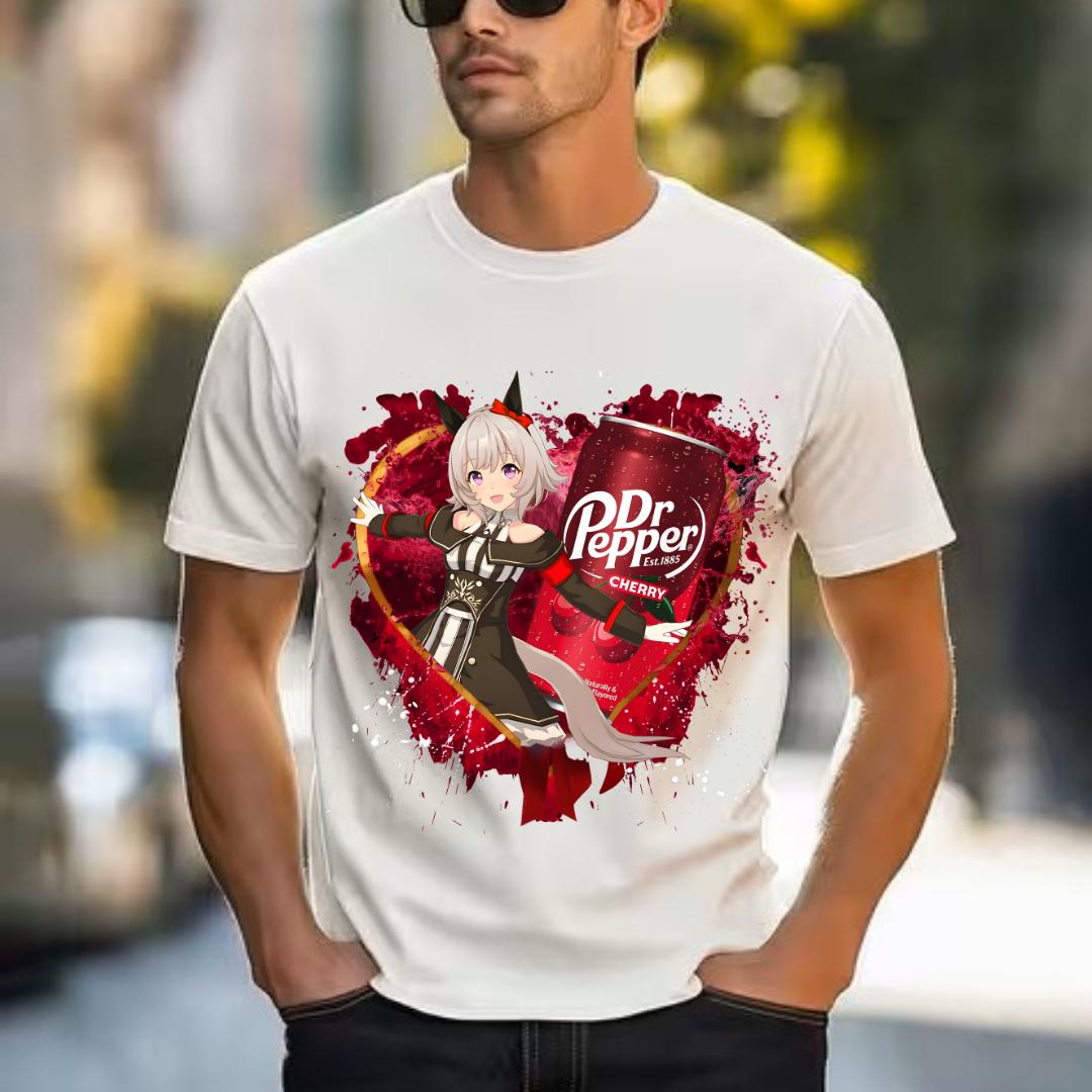 Curren Chan Uma Musume Pretty Derby Print Shirt, Dr Pepper Anime Shirt, Japanese Racing Horse Girl Graphic Tee, Uma Musume Character Print T-Shirt, Cute Kawaii Harajuku Style Top, Retro Vintage Anime Shirt, Otaku Streetwear Unisex Tee