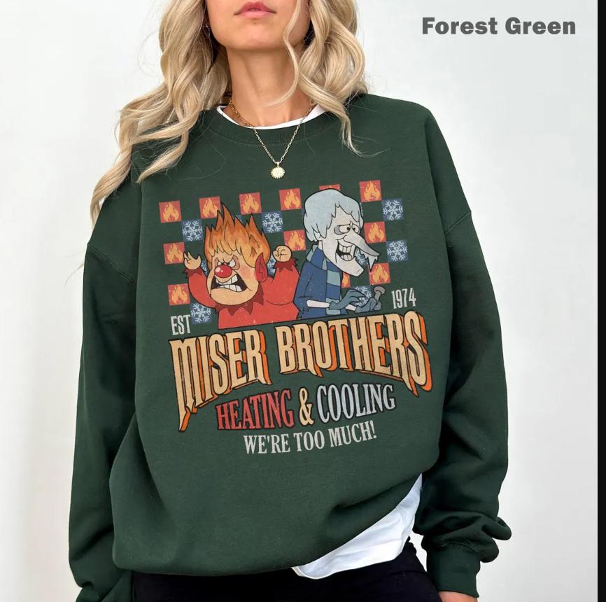 Vintage Heating and Cooling We Are Too Much Sweatshirt, Miser Brothers Heating And Cooling Shirt, The Year Without A Santa Claus Shirt, Too Much Shirt, Snow Miser & Heat Miser Holiday Pullover Christmas Gift X