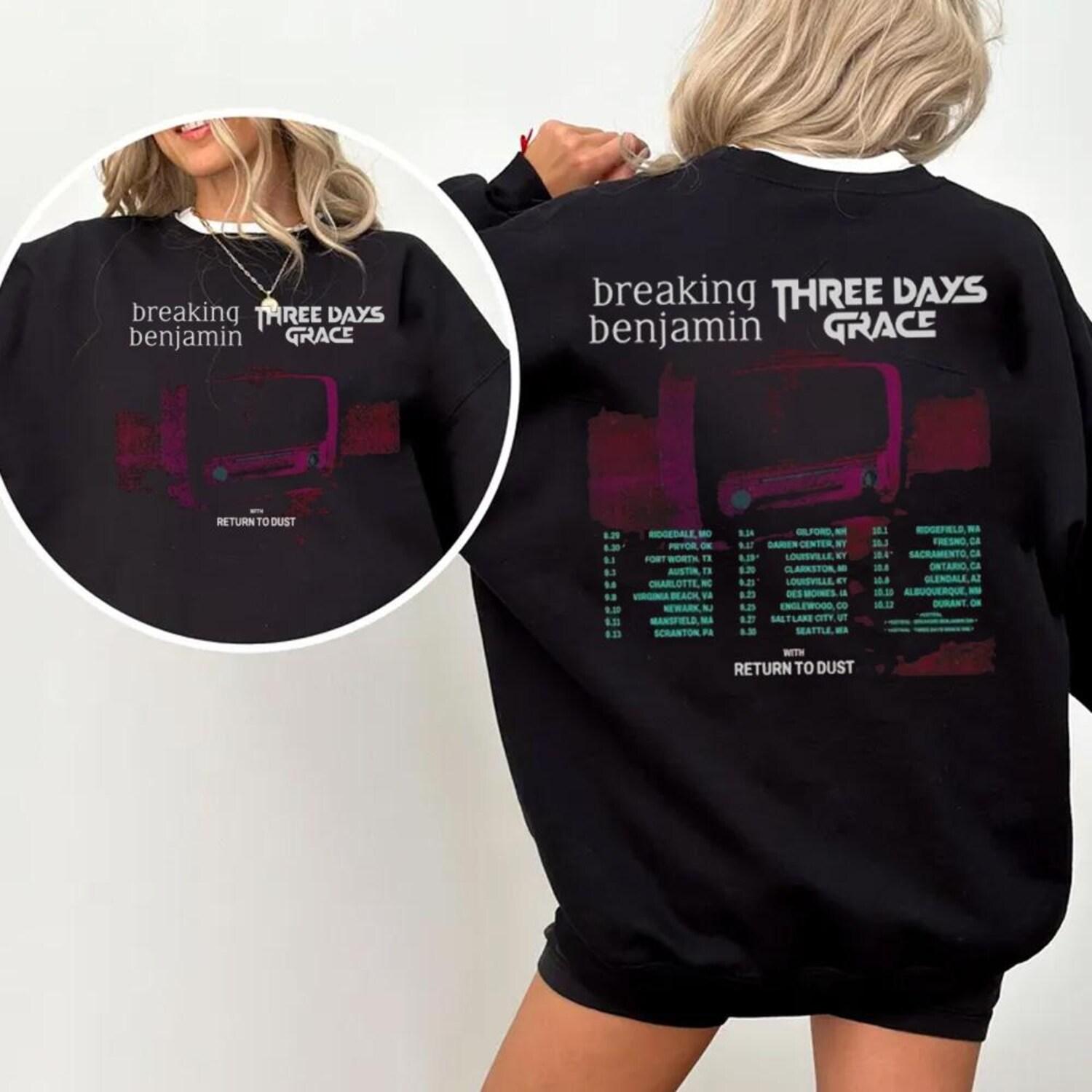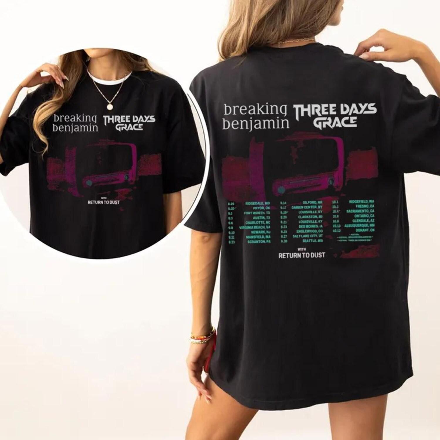 2025 Tour Dates Inspired T-Shirt — Breaking Benjamin × Three Days Grace Rock Show Merch Aesthetic, Oversized Concert Streetwear, Minimal Lettering; Sun-Faded Washed Effect; All-Day Comfort Fabric; Durable Gildan Blank, Festival Ready