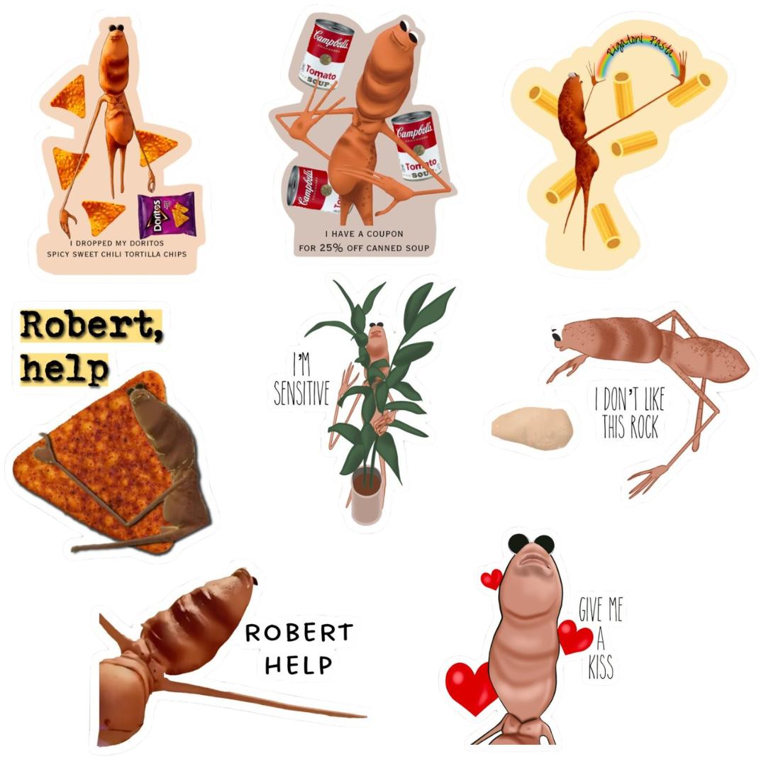 Marcus the Worm Sticker, Funny Robert Help Meme Decal, VR Chat Lover Sticker, Hilarious Brainrot Character Laptop Decal, Gaming Water Bottle Sticker, Trendy Meme Vinyl Sticker for Fans, Cute Worm Character Cartoon Decal for Phone Case