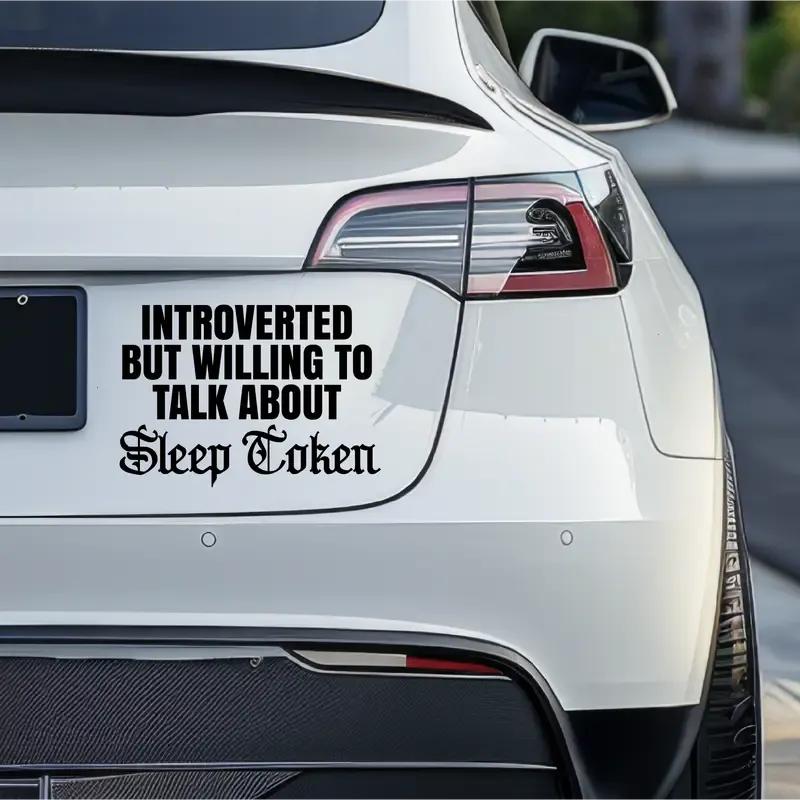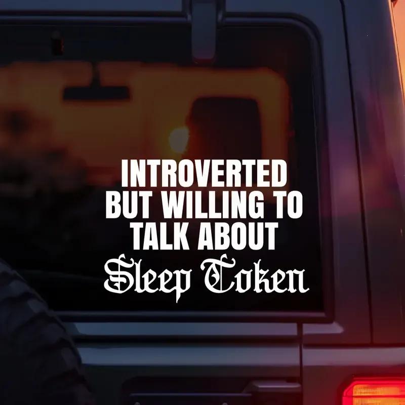 Introverted But Willing To Talk About Sleep Token Vinyl Car Decal - Funny Sticker for Alt Girls, Sleep Token Fans, Music Lovers, and Quiet Metalheads Waterproof Decal for Cars, Laptops, Water Bottles, and Goth Emo Aesthetic Accessories