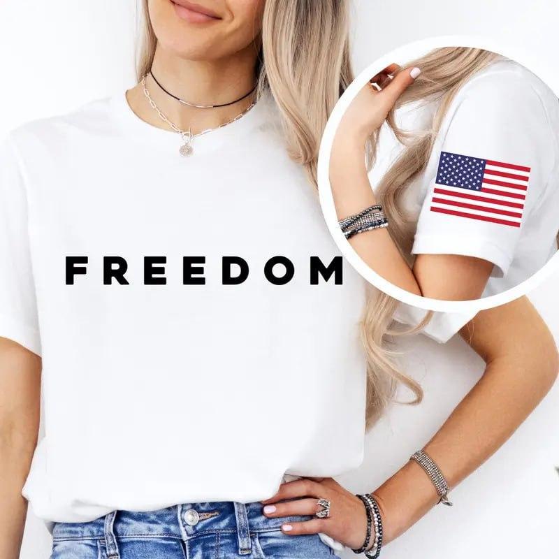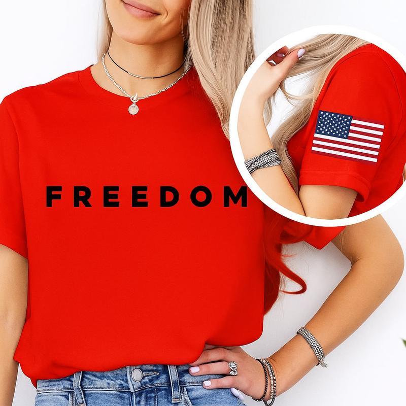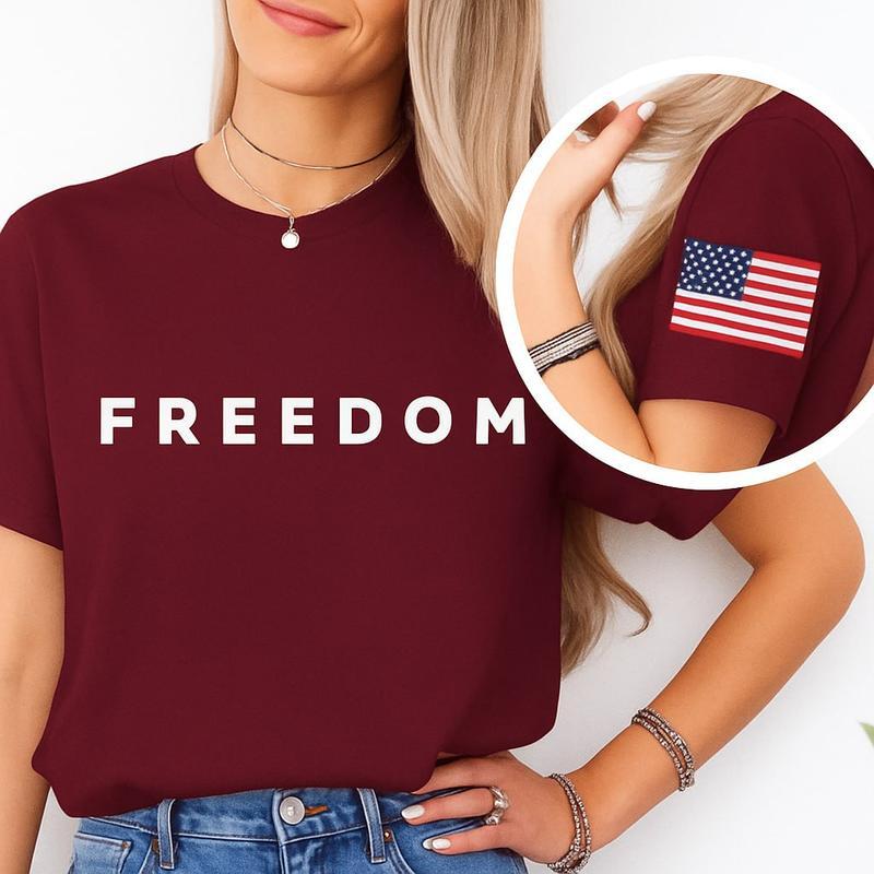 Freedom with American Flag on Left Sleeve A True Patriot T-Shirt, Charlie's Birthday Wear Red on October 14th as National Day of Remembrance for C.K. Tee, Graphic Design Unisex Cotton T-shirt for Men for Women Menswear Womenswear