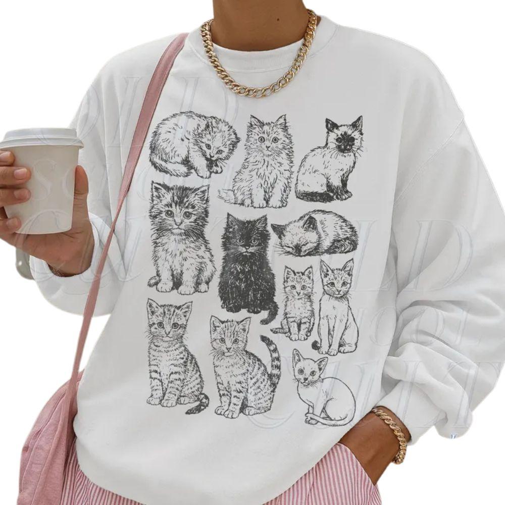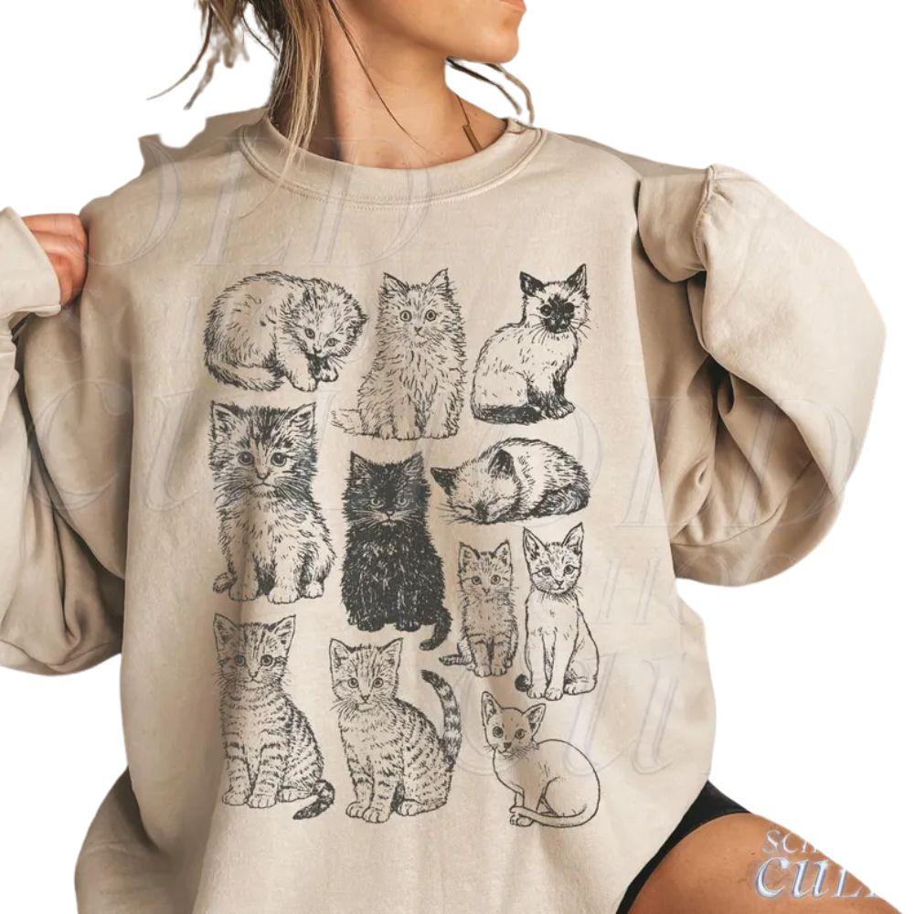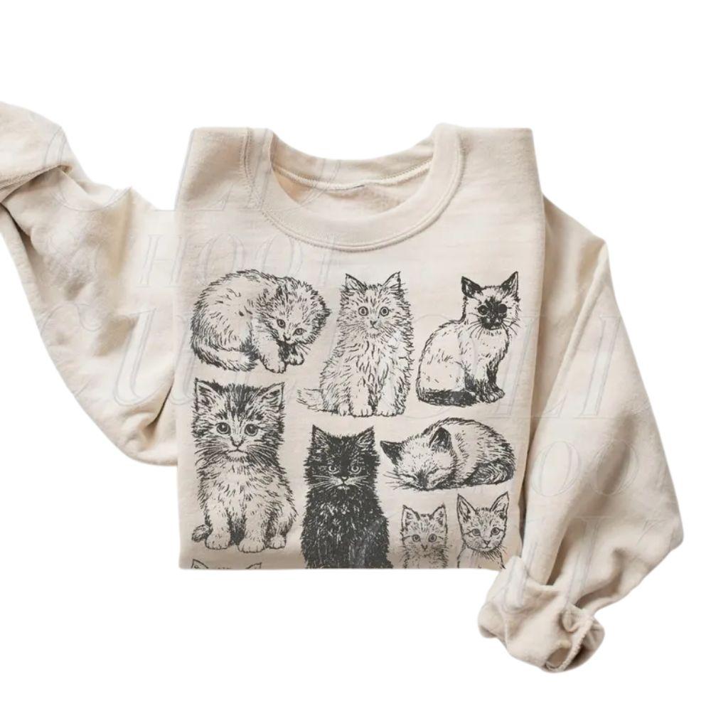 The Vintage Cat Sweatshirt, Retro Kitten Graphic Pullover, Cozy Cat Lover Gift, 90s Style Shirt, Cute Cat Mom Sweater, Boho Unisex Crewneck Sweatshirt, Menswear Top, Womenswear Top Underwear Streetwear Medium