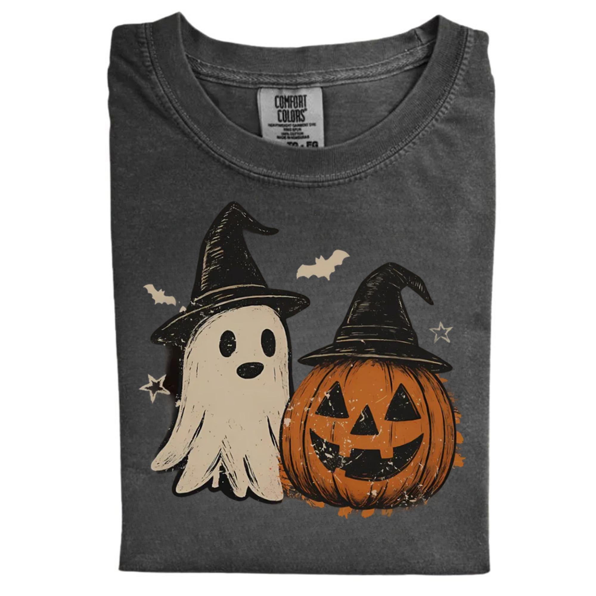 Comfort Colors Halloween Pumpkin Ghost Shirt, Witch Hat Ghost, Jack-o'-Lantern Graphic T-shirt, Spooky Fall Shirt, Cute Halloween Tee, Pumpkin Ghost Halloween Shirt, Gift for Men, Gift for Women, Crew Neck T-shirt, Trending T-shirt
