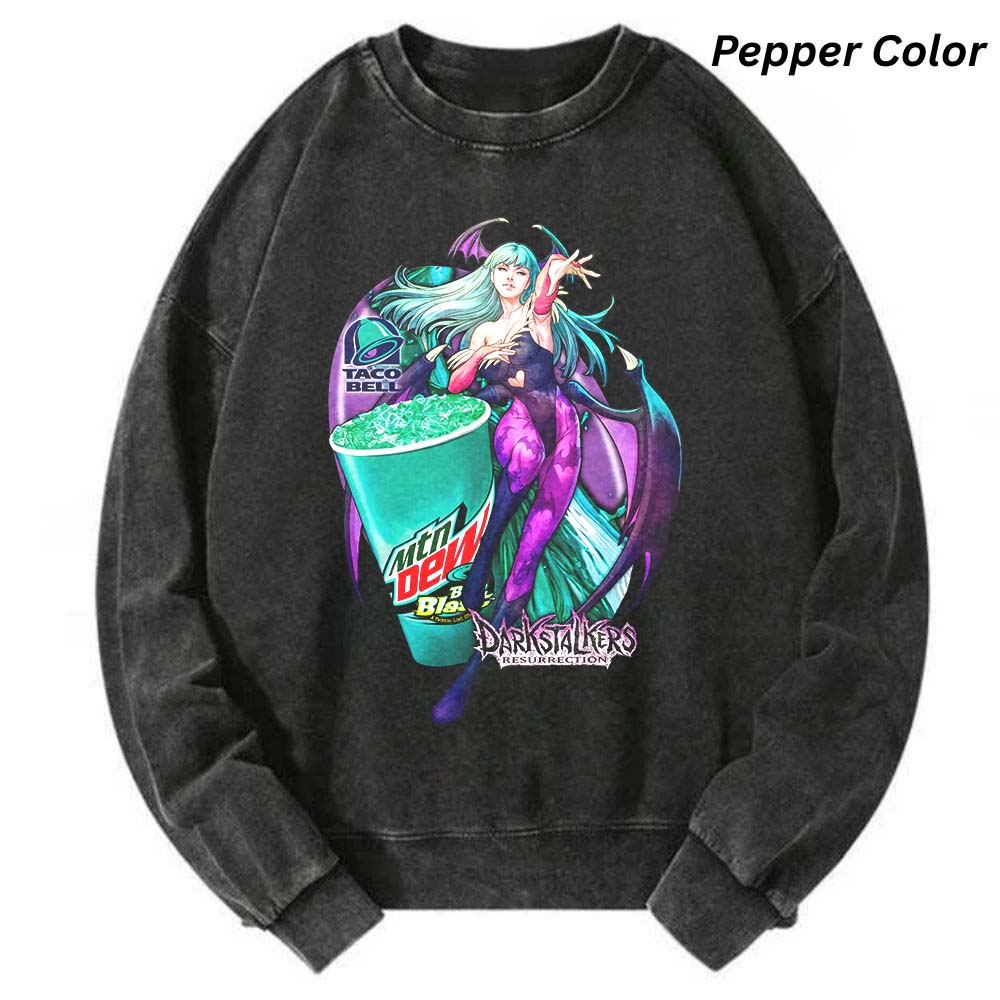 The Morrigan Aensland Mountain Dew Darkstalkers Resurrection Sweatshirt, Vintage Soda Lover Crewneck Gift for Fans, For Men And Women Size S-3XL, Gift for Men, Gift for Women, Crew Neck T-shirt, Trending T-shirt