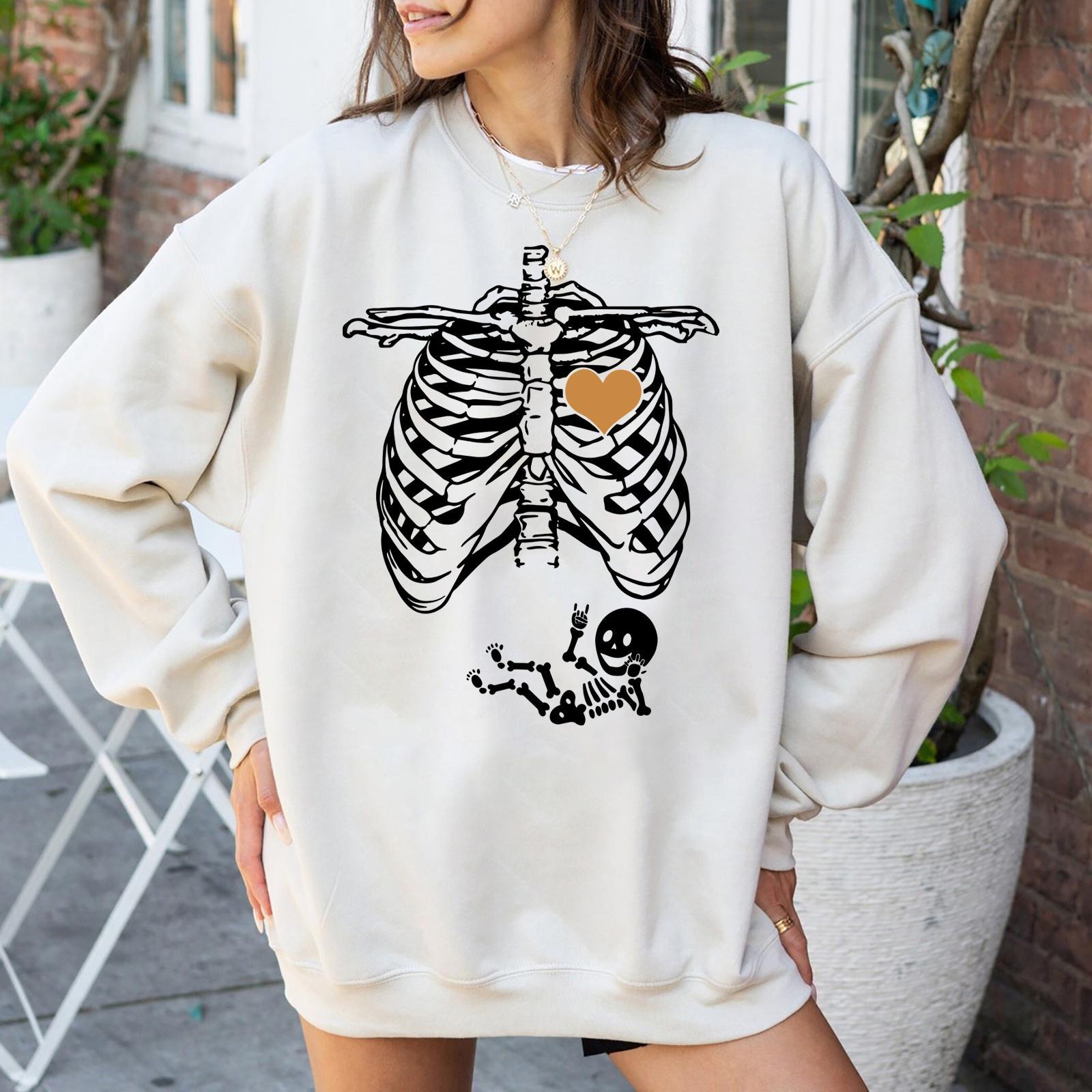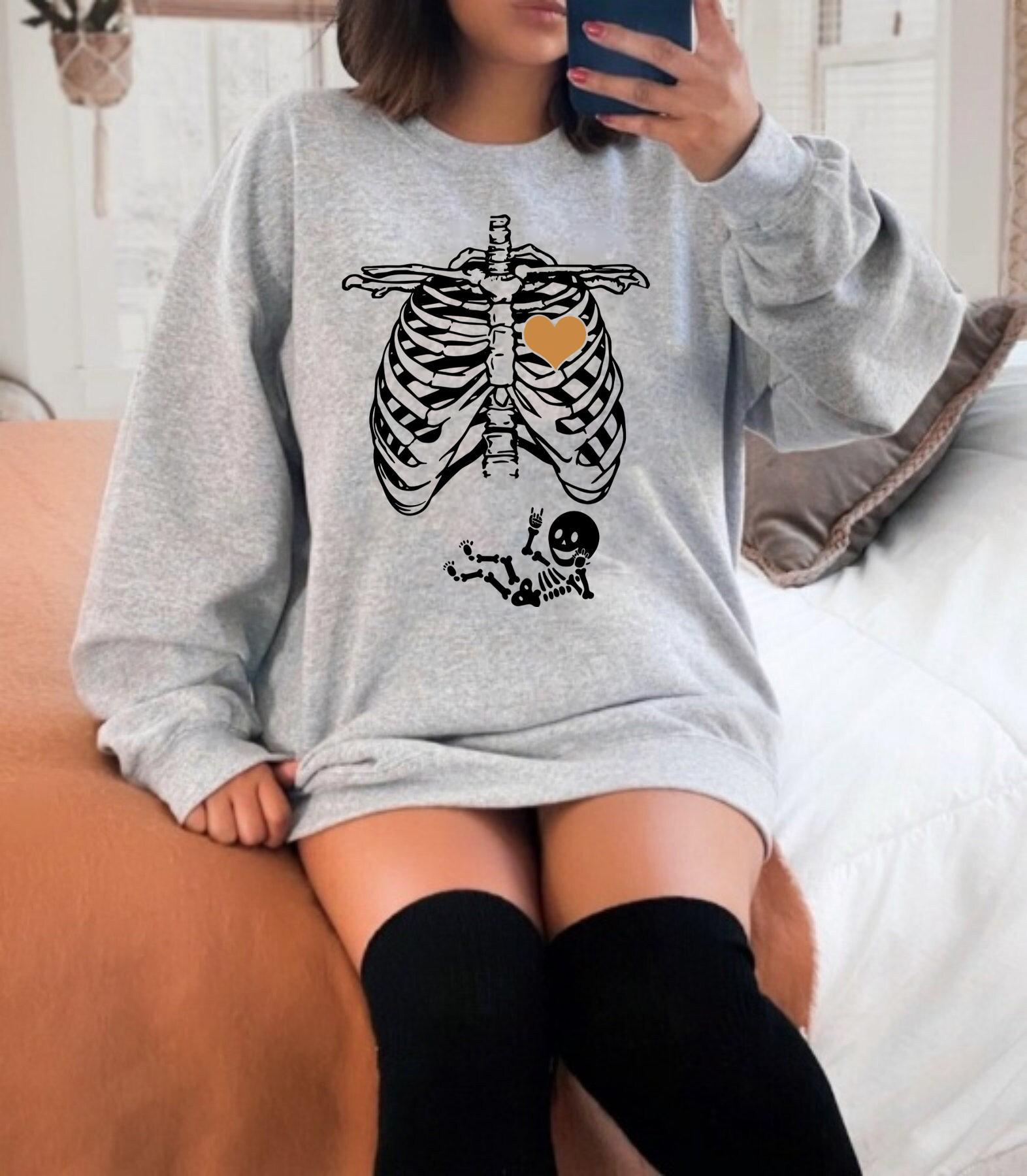 Vintage Skeleton Maternity Halloween Sweatshirt, Pregnancy Announcement Shirt, Halloween Skeleton Shirt, Halloween Gift, Sweatshirt, Hoodie