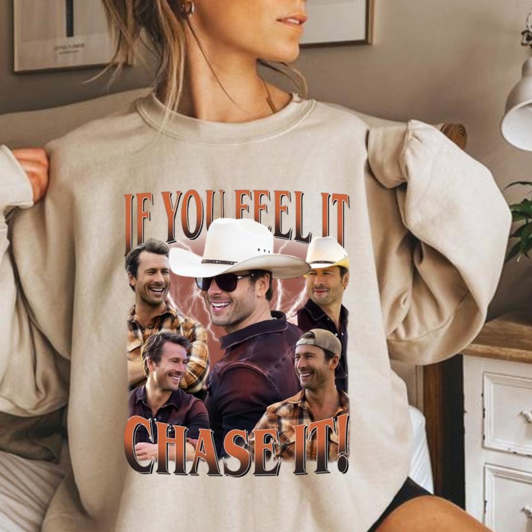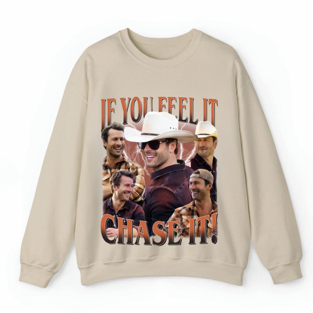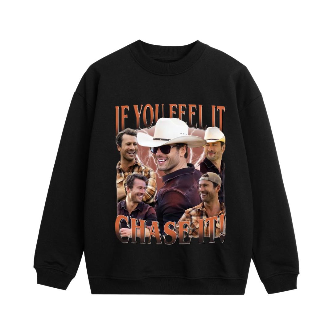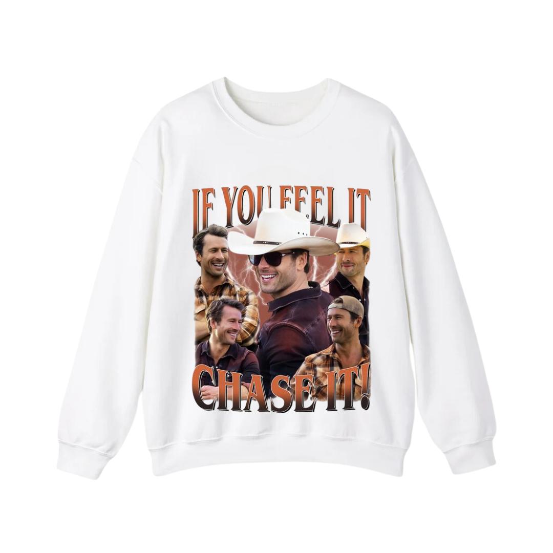 Vintage If you feel it Chase it Sweatshirt, Glen Powell as Tyler Owens Twisters Sweatshirt, Unisex Sweatshirt, Shirt for Men, Shirt for Girl, Vintage Graphic Sweatshirt