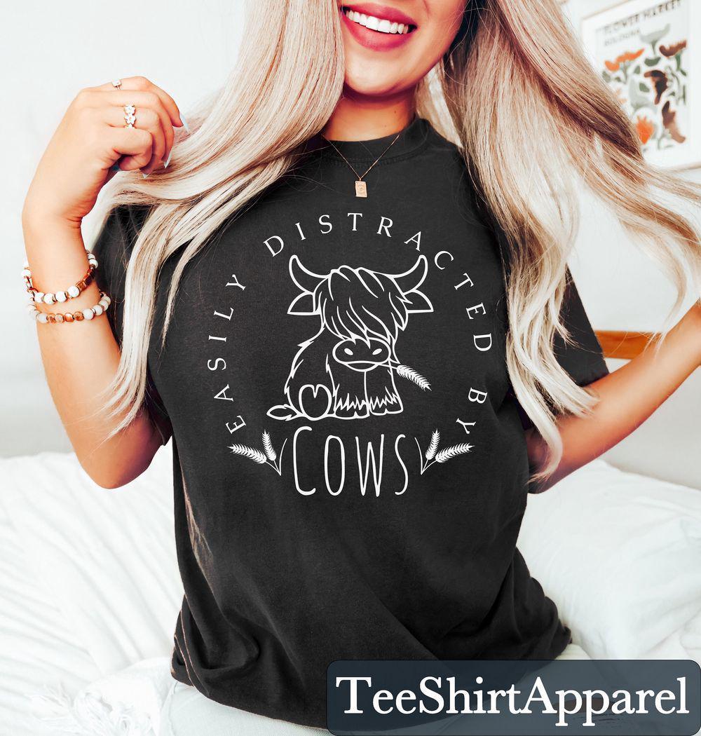 Highland Cow Shirt, Easily Distracted By Cows Shirt, Funny Cow Shirt, Cow Lover Gift, Farm Animal Tshirt, Farmer Shirt,Country Shirt,Cow Tee, Sweatshirt, Hoodie
