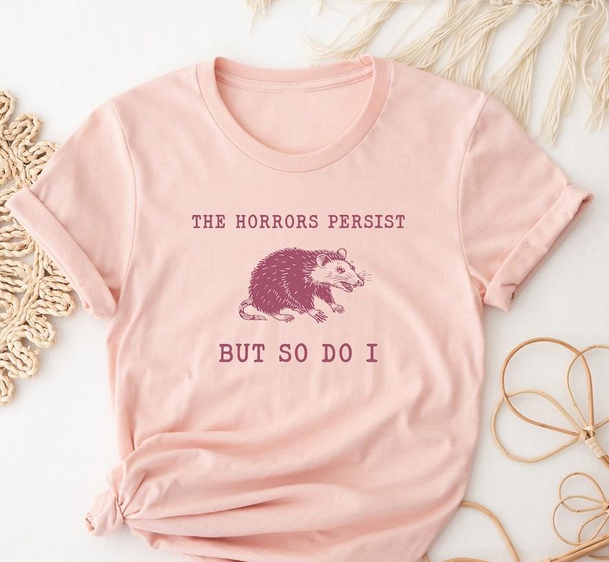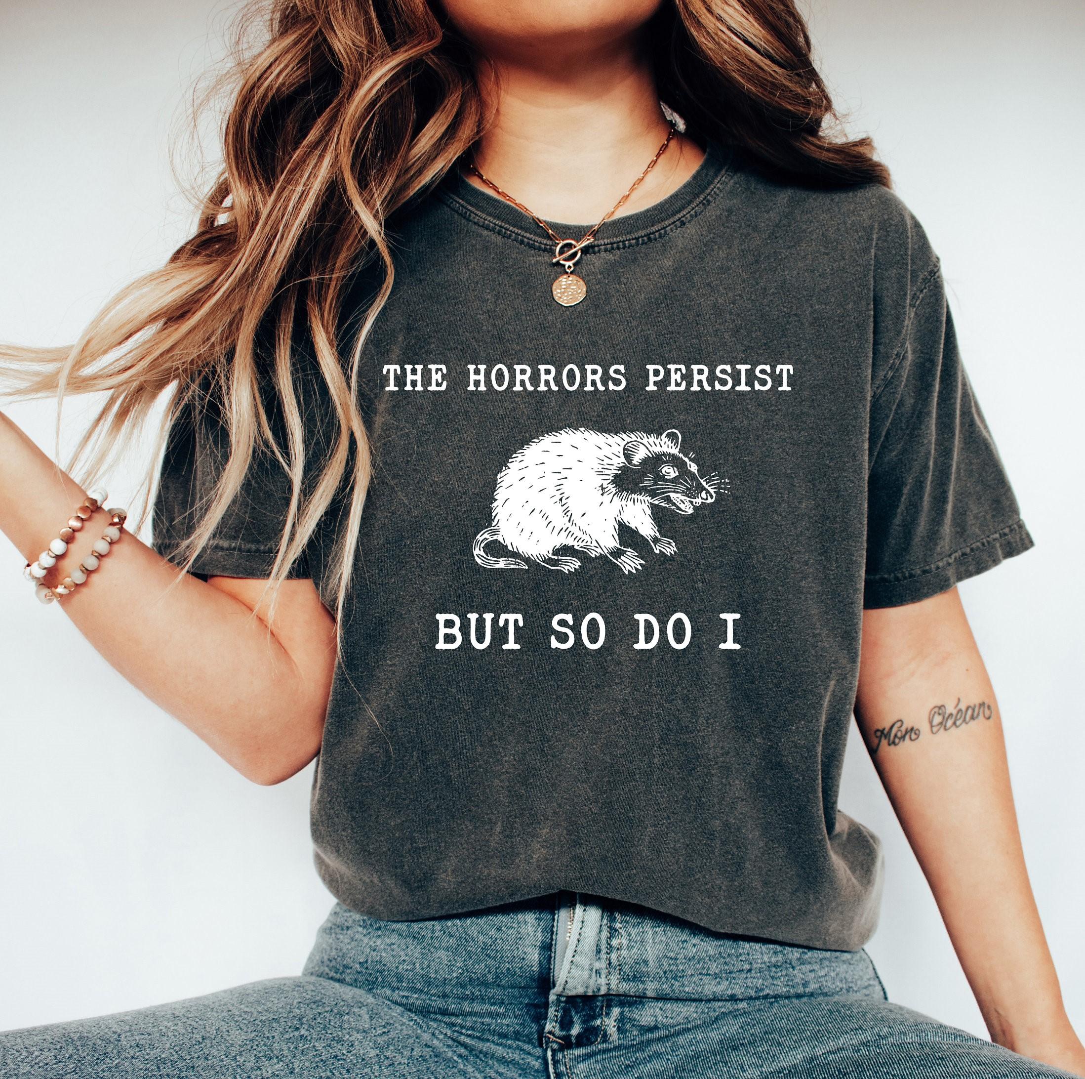 The Horrors Persist But So Do I, Raccoon Gift, Raccoon Sweatshirt, Trendy Woman Clothing Vintage T-shirt, Unisex T Shirt