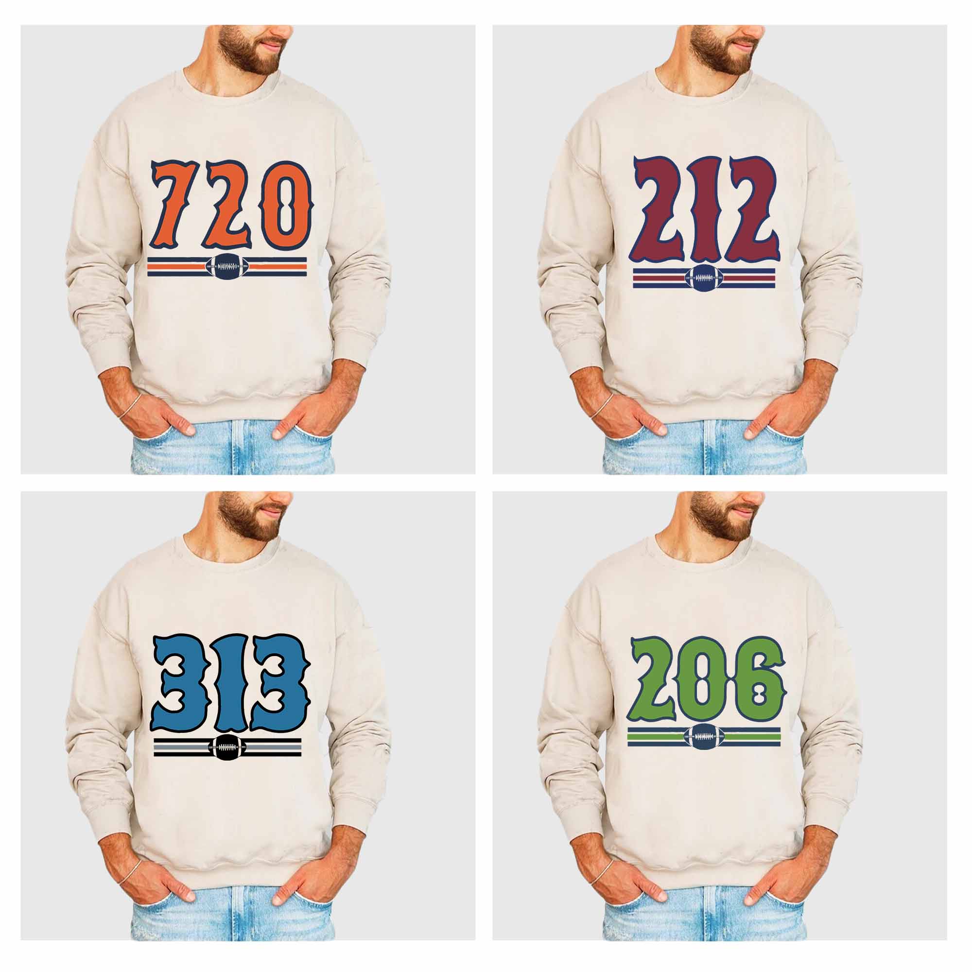 Vintage Unisex Area Code Football Sweatshirt, Football Sweatshirt, Football Fan Sweatshirt, Hometown Pullover City Football Retro Sweatshirt