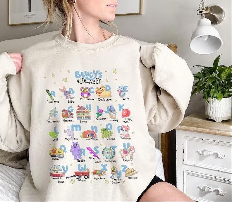 Bluey Alphabet Comfort Color T-shirt, Bluey Birthday Party Sweatshirt, Bluey Theme Shirts, Bluey Matching Tees, Bluey Family Hoodie, Sweatshirt, Hoodie