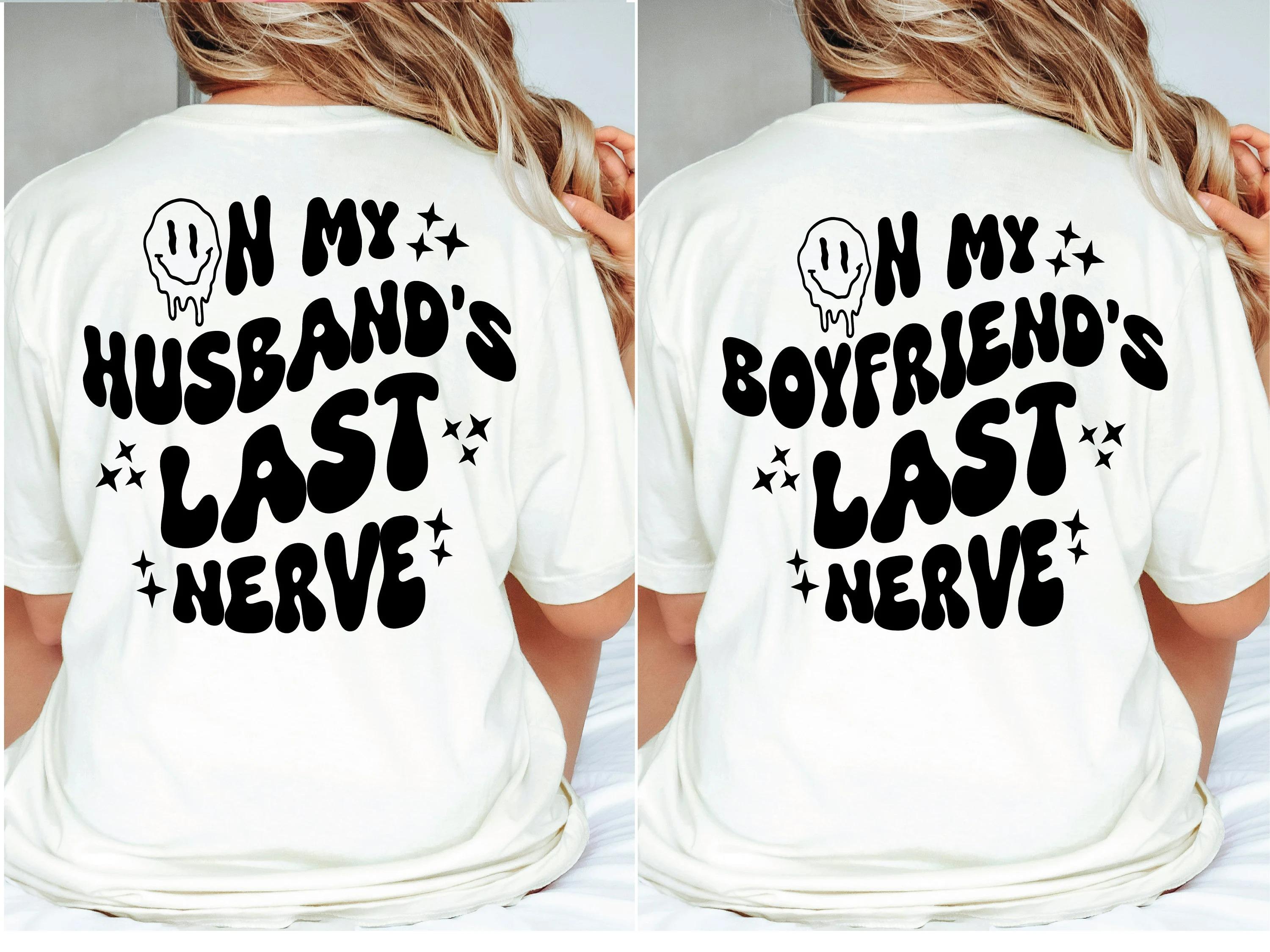 On My Husband's Last Nerve T-Shirt, Graphic Quote Summer Tee, Gift For Men, Women