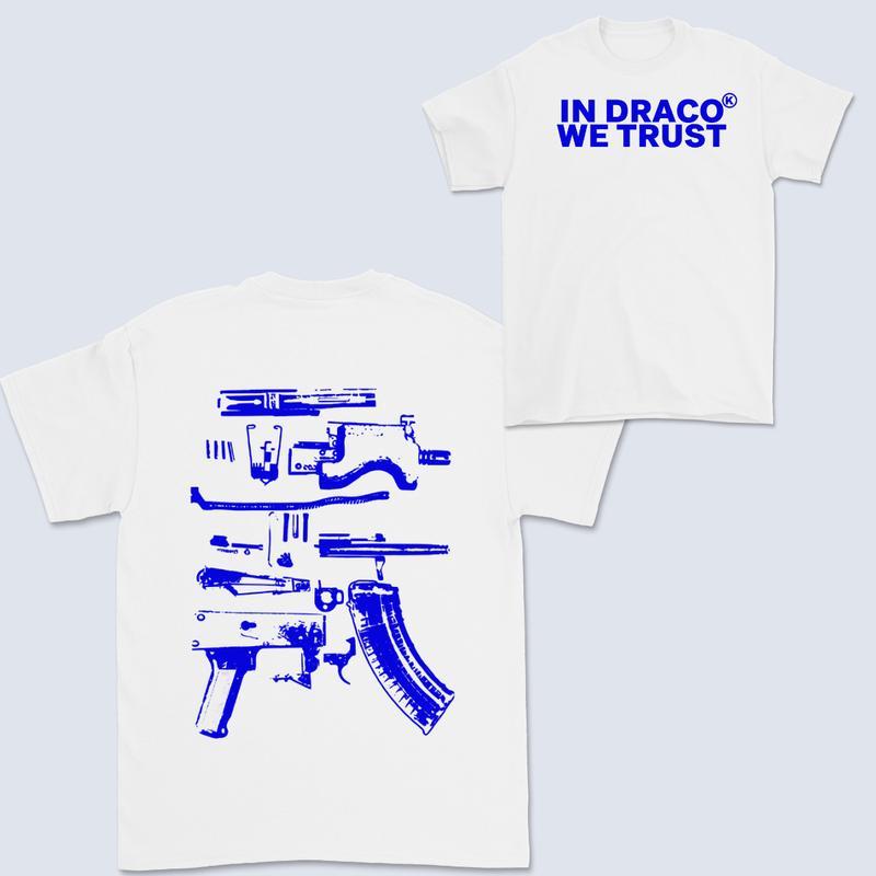In Draco We Trust Double Side Version Shirt Menswear Top, White Color and Black Color Unisex T-Shirt