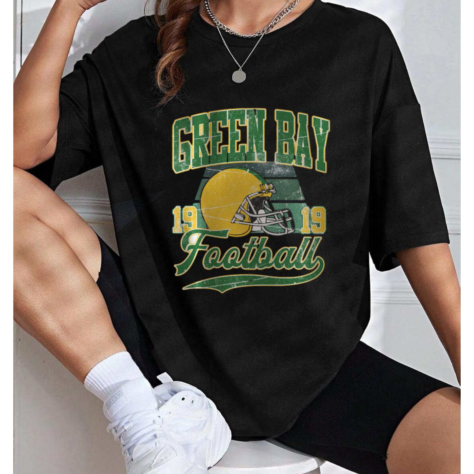Football Vintage T-Shirt Green Bay , Orange College T-Shirt Cotton, Full Color T-Shirt, Unisex T-Shirt, For Men Women