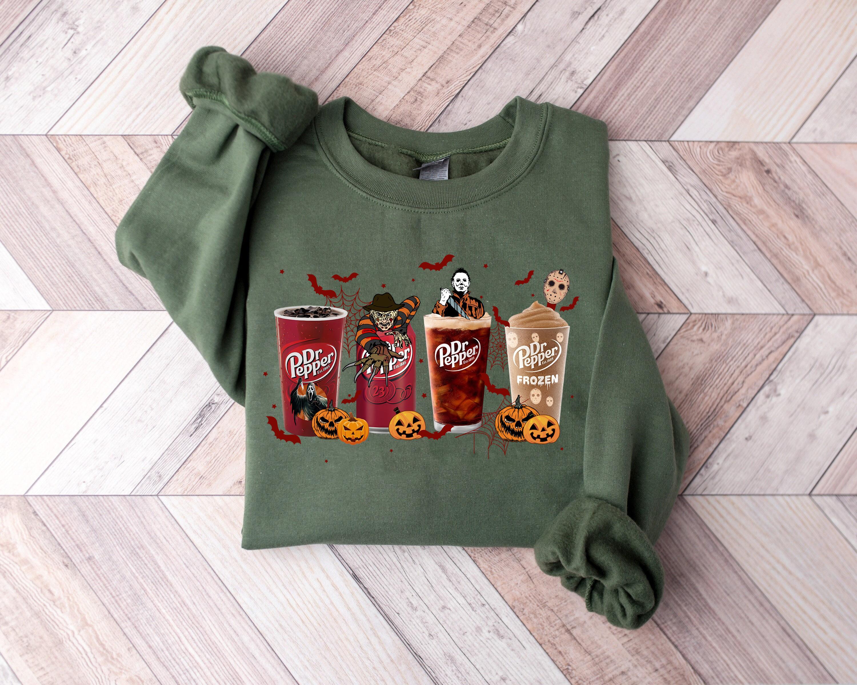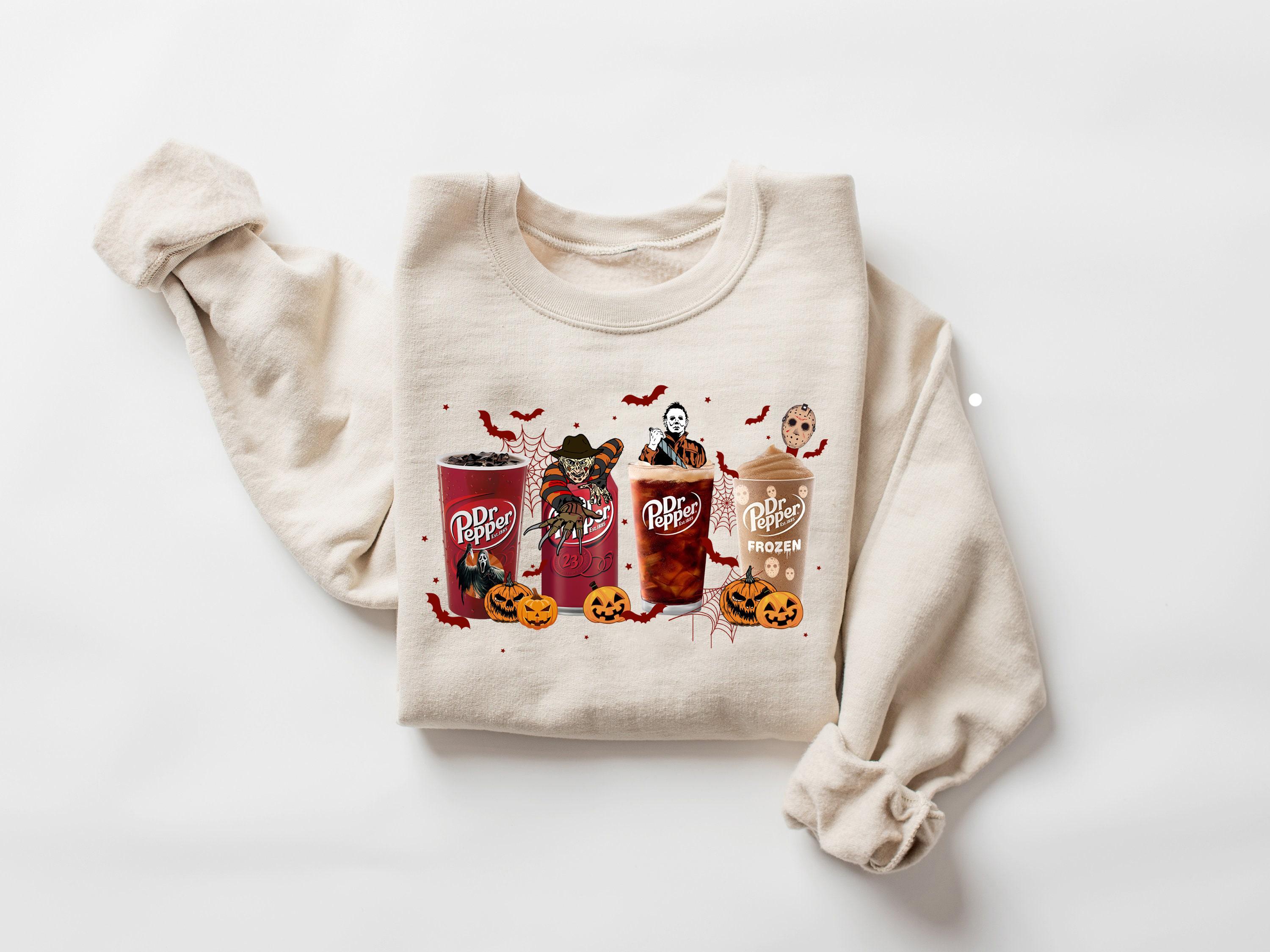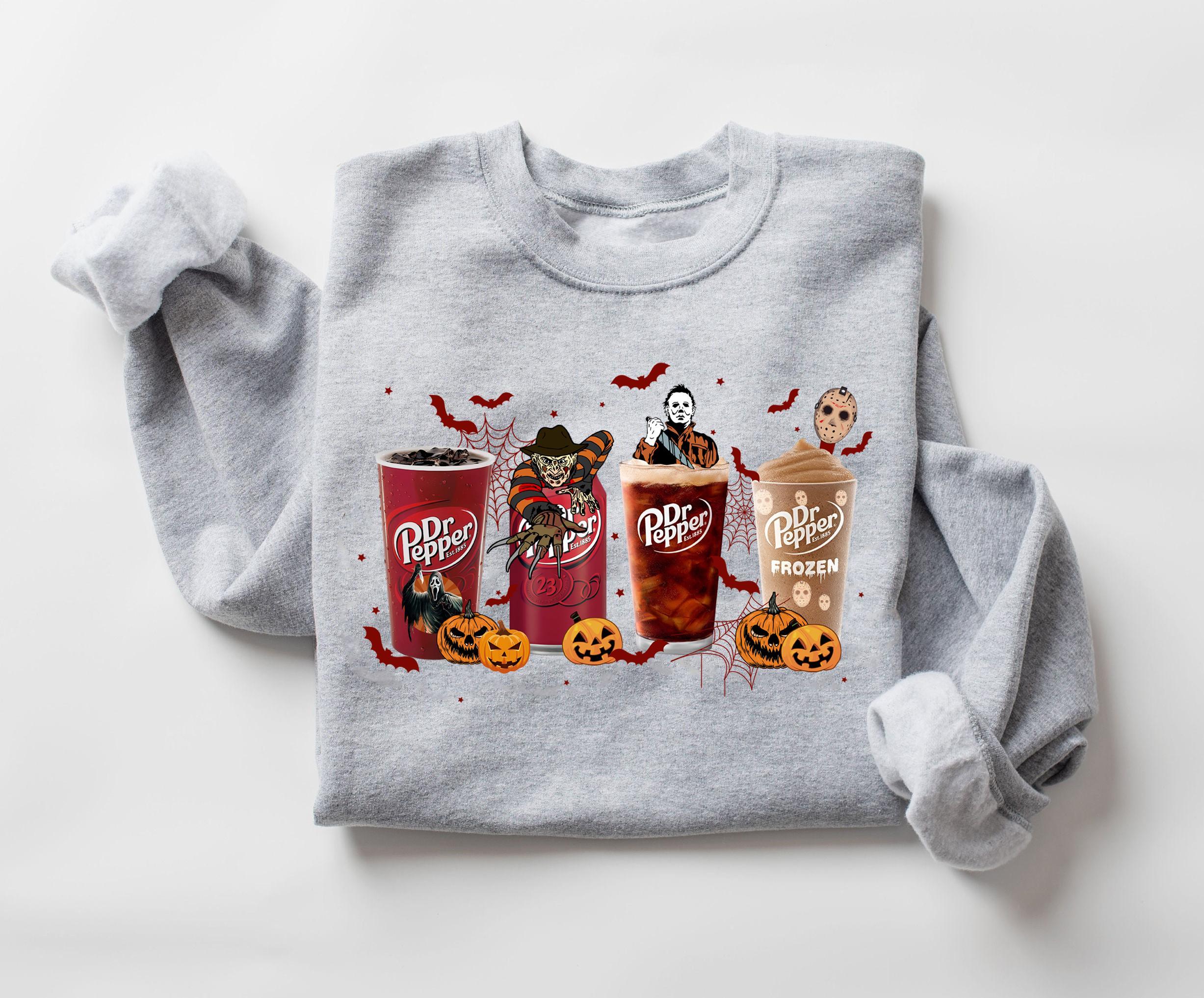 Dr Pepper Horror Halloween Sweatshirt, Horror Halloween Shirt, Horror Movie Characters Sweatshirt, Halloween Fall Crewneck, Scary Spooky Season Shirt, Sweatshirt, Hoodie