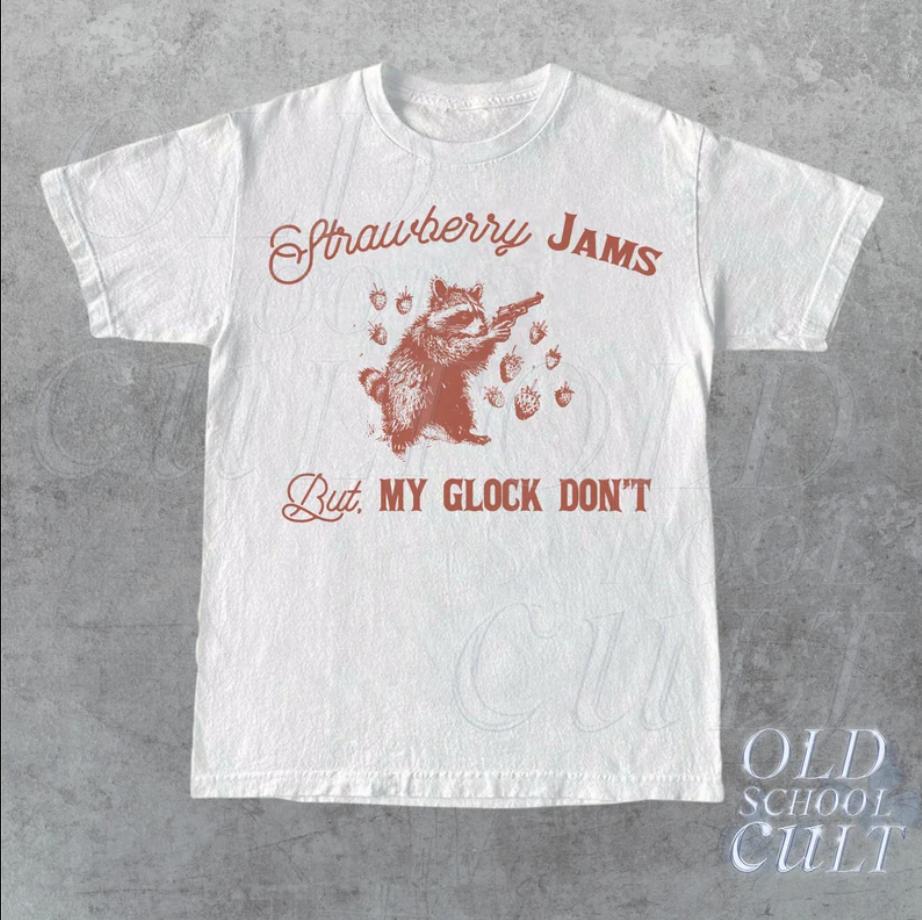 Strawberry Jams but My Glock Do Not Vintage T-Shirt, Retro 90s Raccoon Shirt, Oversized Trash Panda Tee, Funny Unisex Adult Cowboy T-Shirt