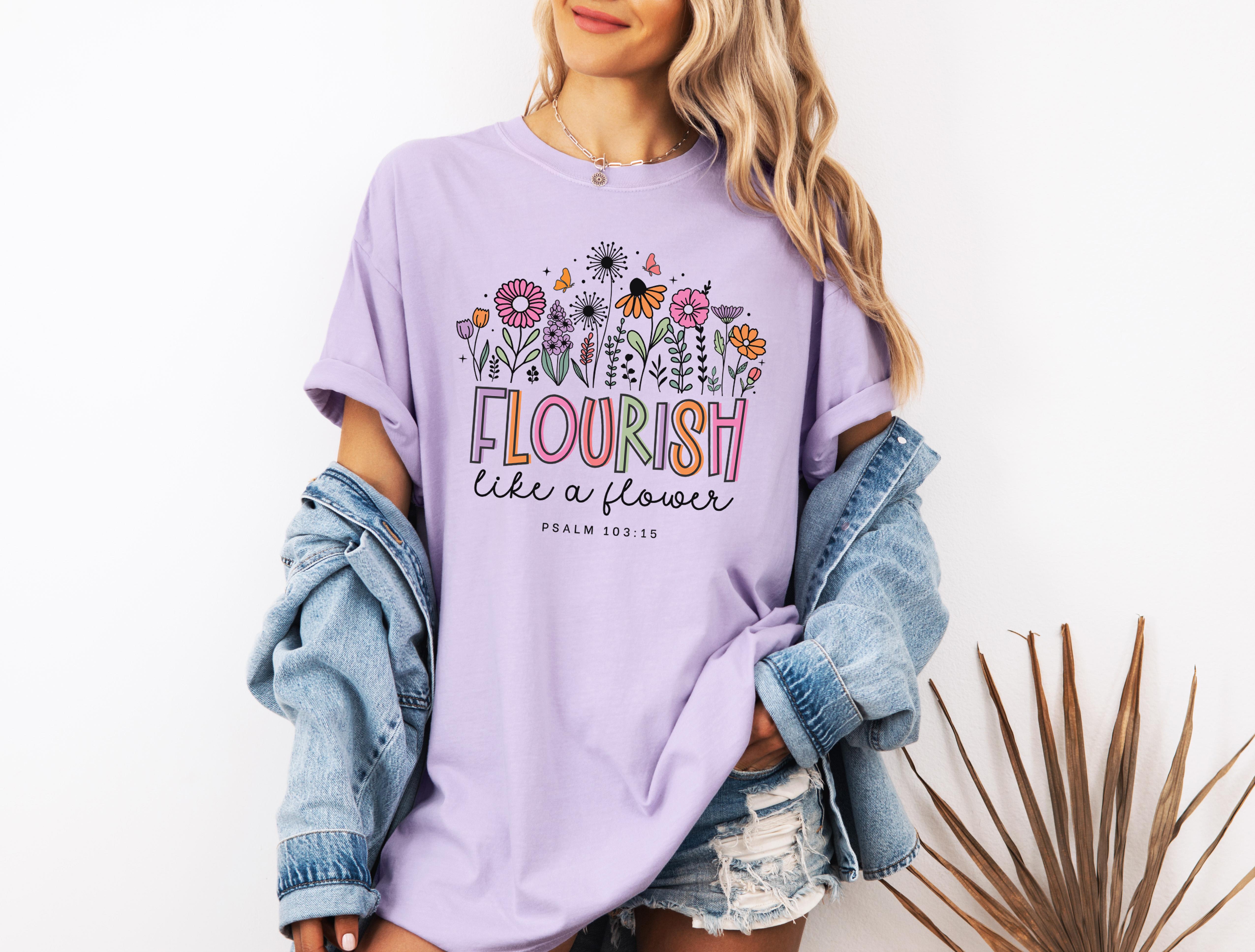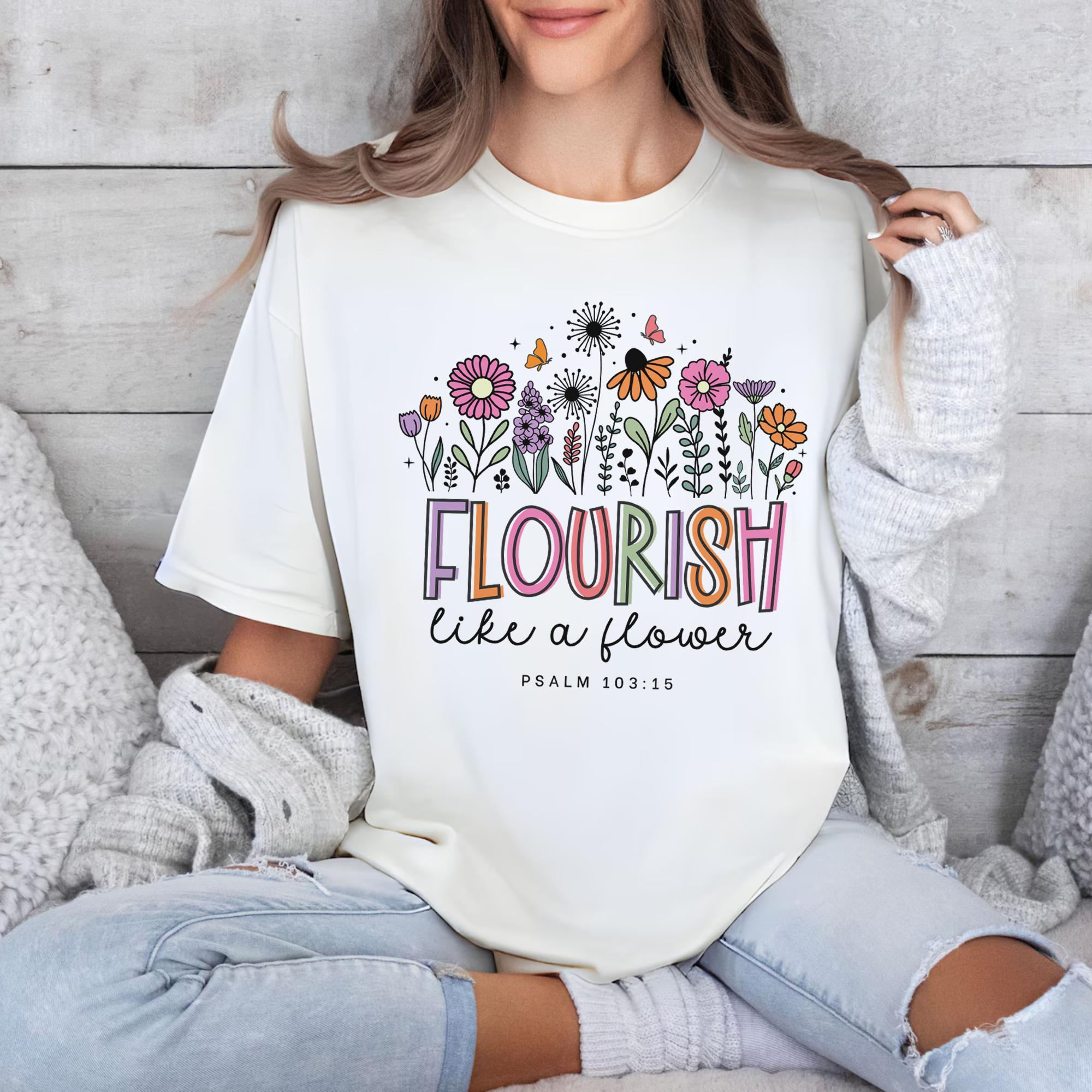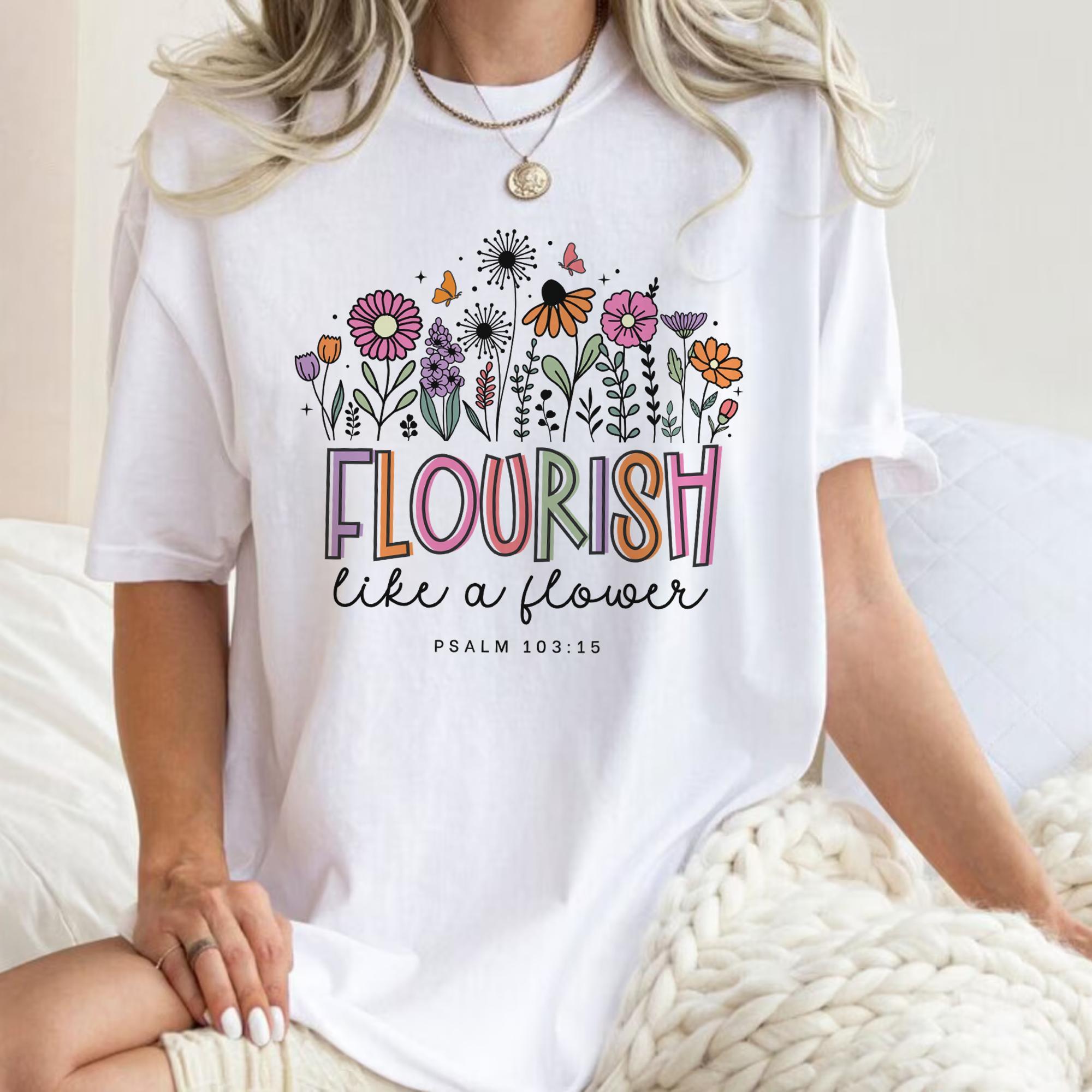 Flourish Like a Flower s Shirt, Christian Shirt, Jesus Apparel, Floral Jesus Oversized Tshirt, Graphic Tshirt for Women, Psalm, Sweatshirt, Hoodie