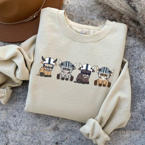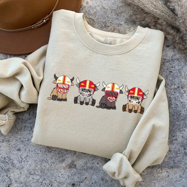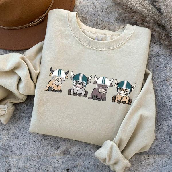 Teams Highland Cow Football Sweatshirt, Vintage Sweatshirt
