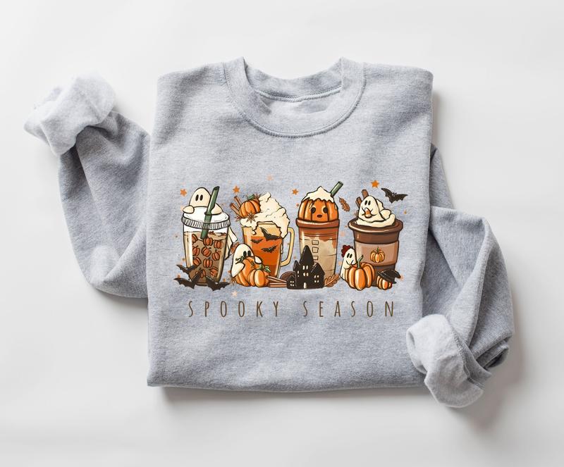 Halloween Sweatshirt Fall Coffee, Cute Fall, Pumpkin Spice Iced Coffee Spooky Unisex Good Gift For Everyone