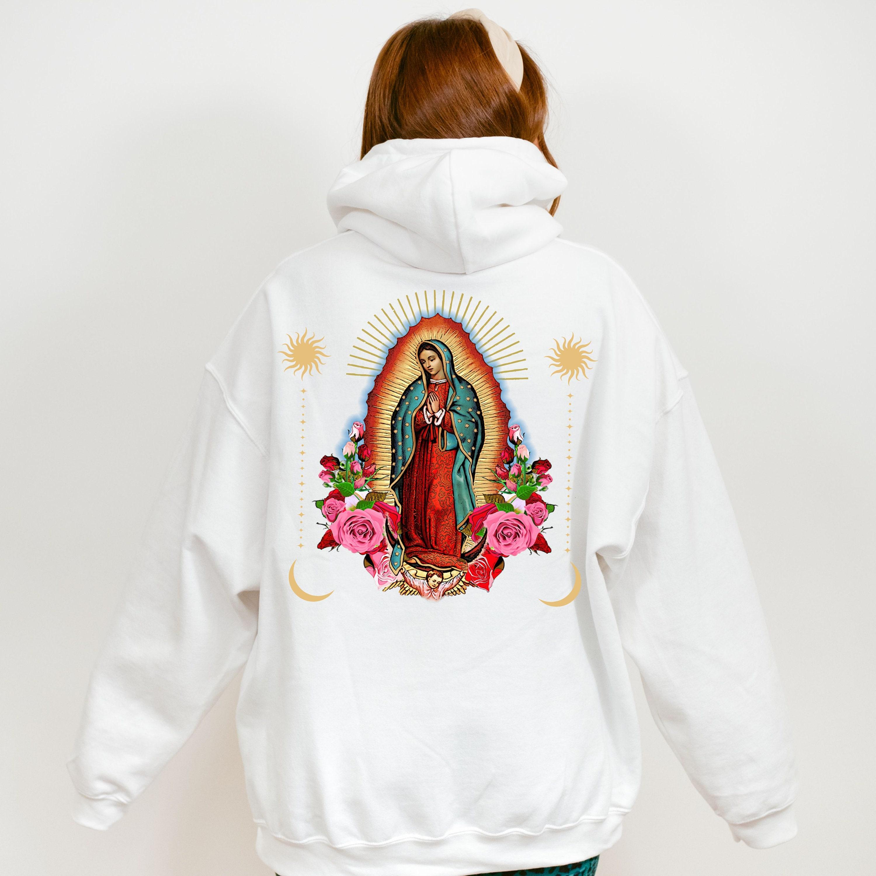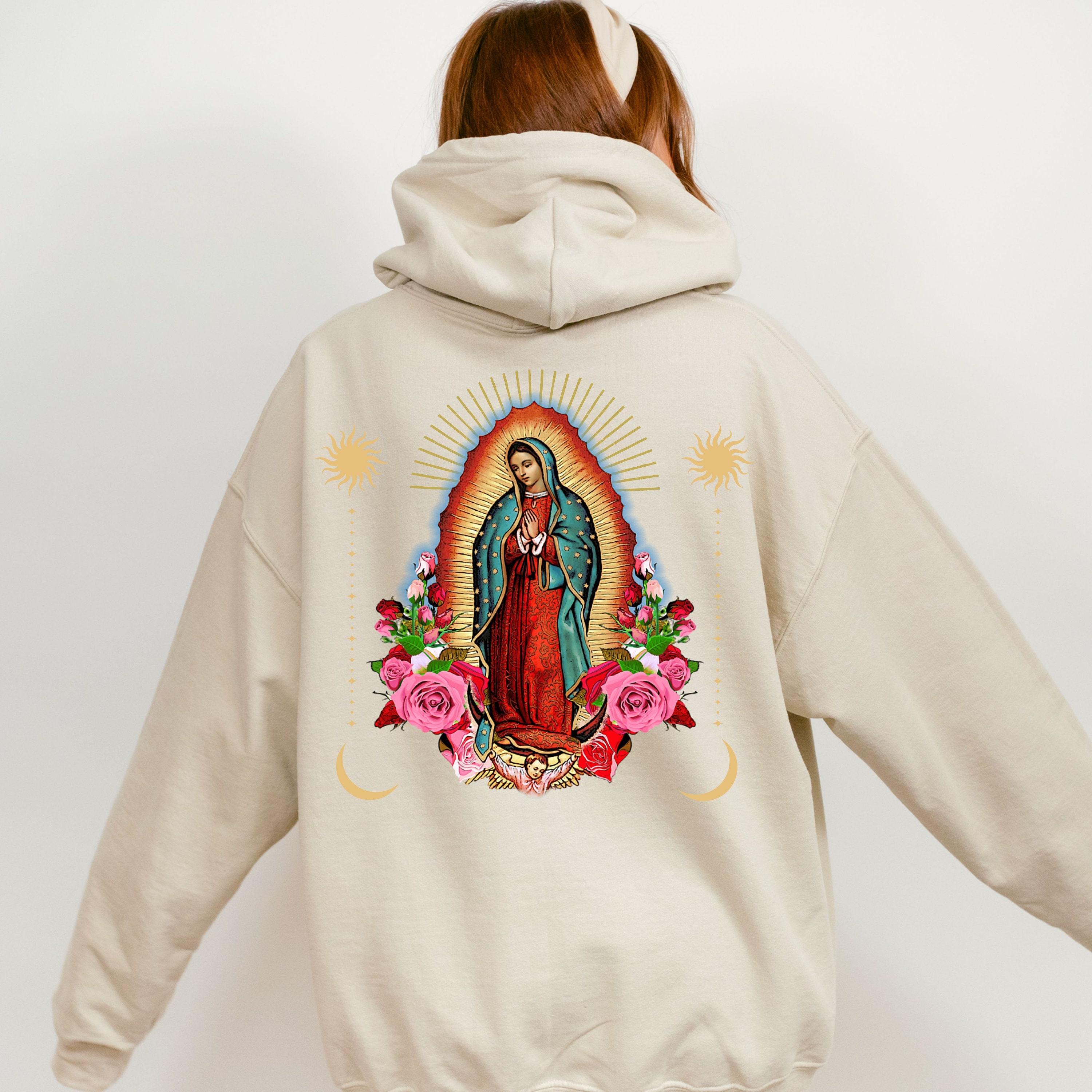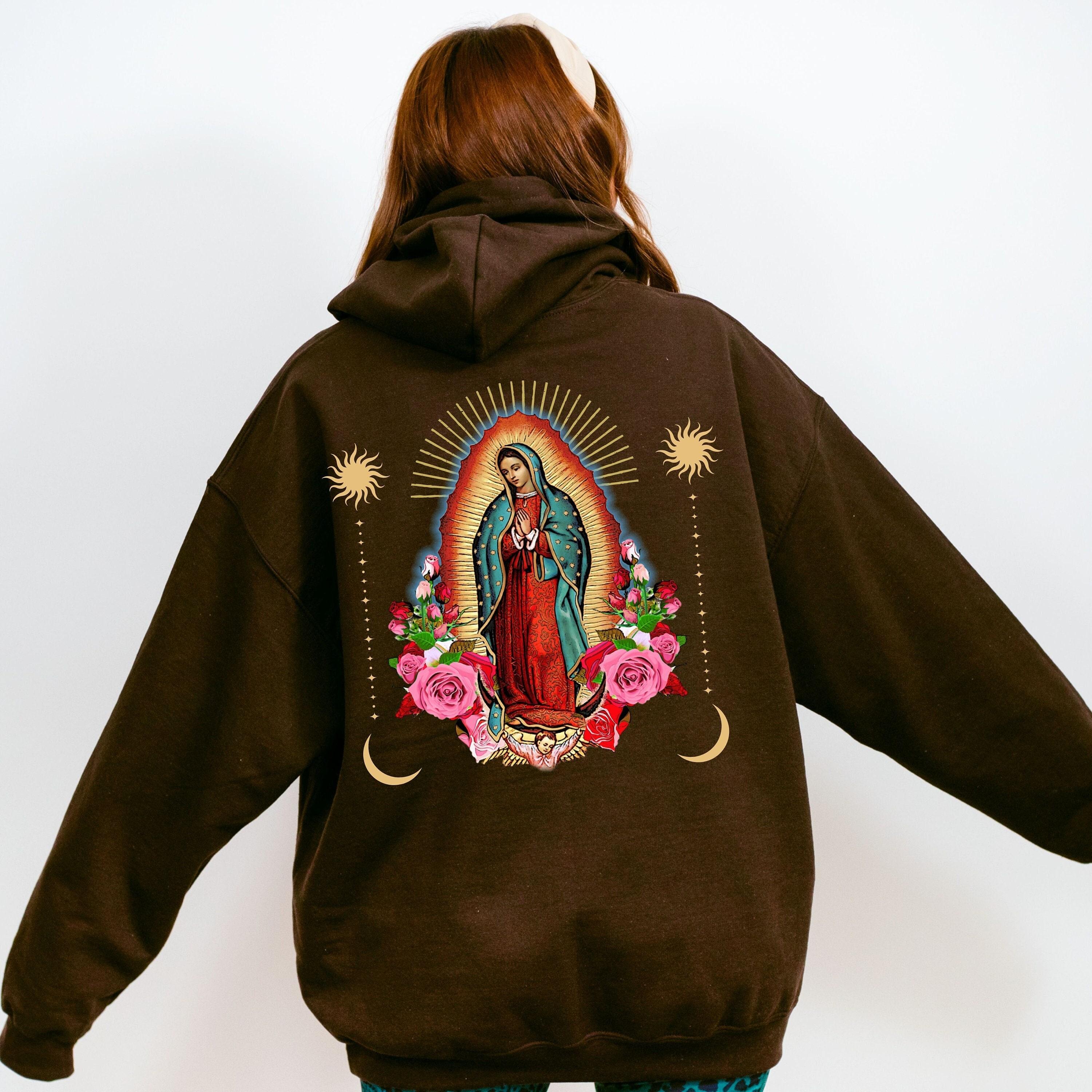 Virgen Mary Celestial Hoodie Mystical Religious Hoodie, Our Lady Of Guadalupe Traditional Catholic Aesthetic Hoodie