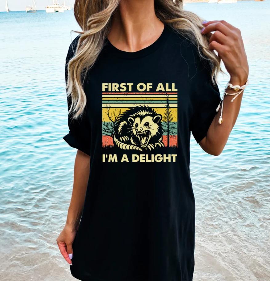 First Of All I'm A Delight Shirt, Cute Sarcastic tshirt, Sarcastic Self Love, Gift For Best Friend, Possum Lover