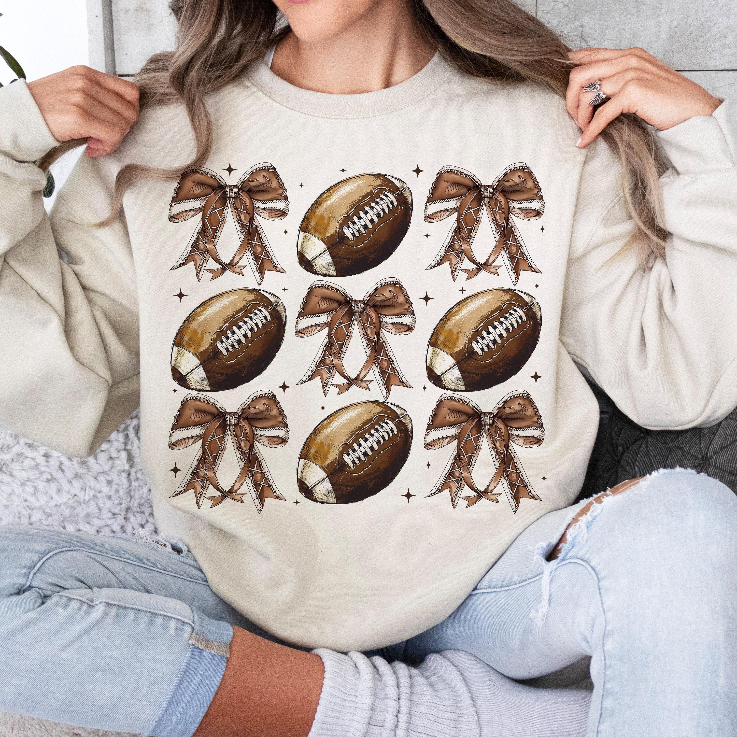 Retro Football Bow Sweatshirt, Fall Coquette Bow Sweatshirt, Fall Football Shirt Sweatshirt, Football Sport Sweatshirt, Football Mom Sweatshirt, Game Day Sweatshirt a398