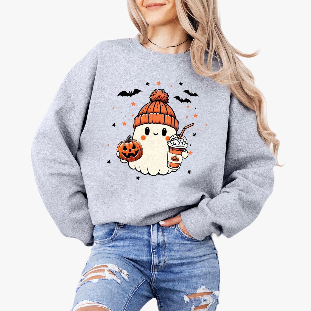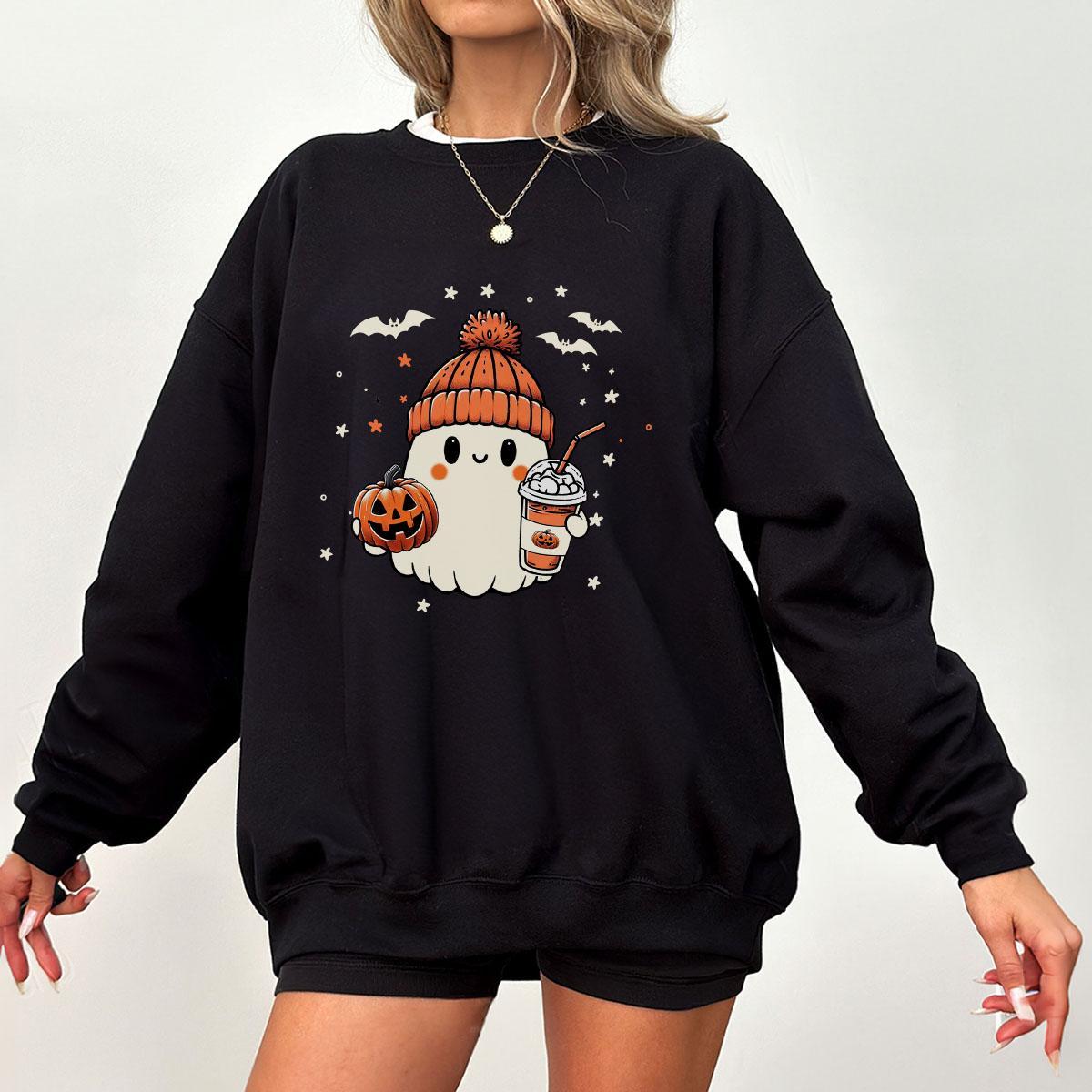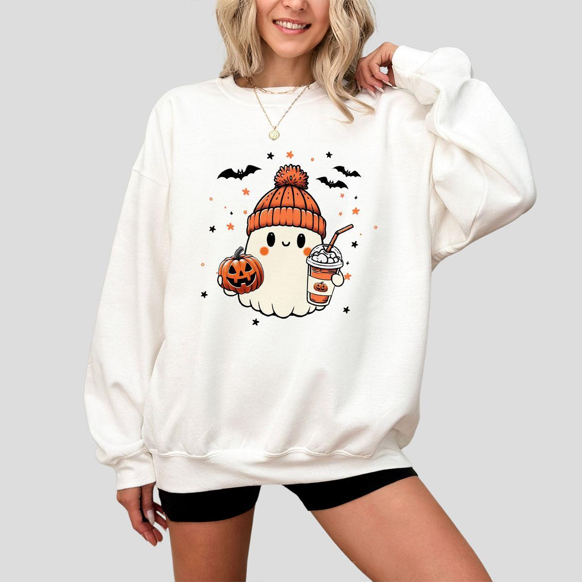 Cute Ghost Halloween Sweatshirt, Cute Ghost Comfort Shirt, Bougie Ghost Shirt, Halloween Coffee Shirt, Halloween Crewneck, Ghost Tee, Spooky Season, Halloween Shirts For Women, Gift For Her, Halloween Women Top, Sweatshirt, Hoodie