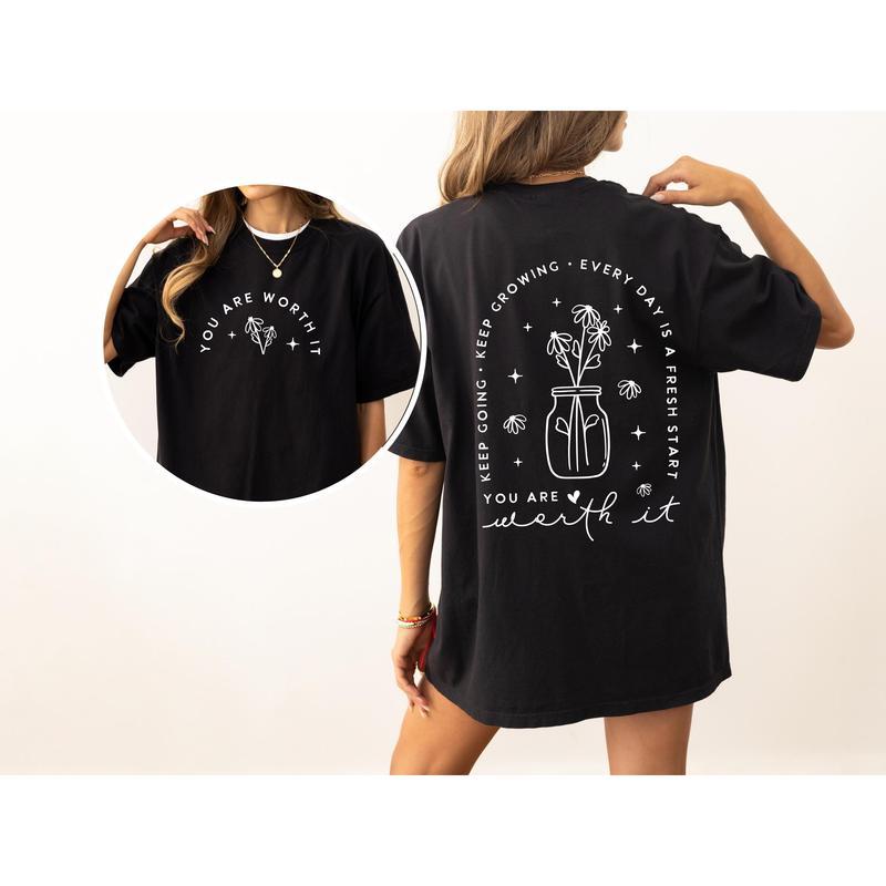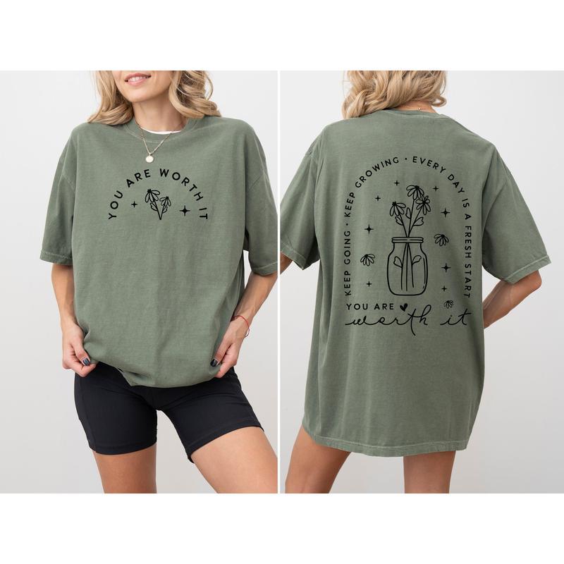 You Are Worth It T-Shirt, Graphic Positive Quote Text Tee, Gift Summer Women Men Fit