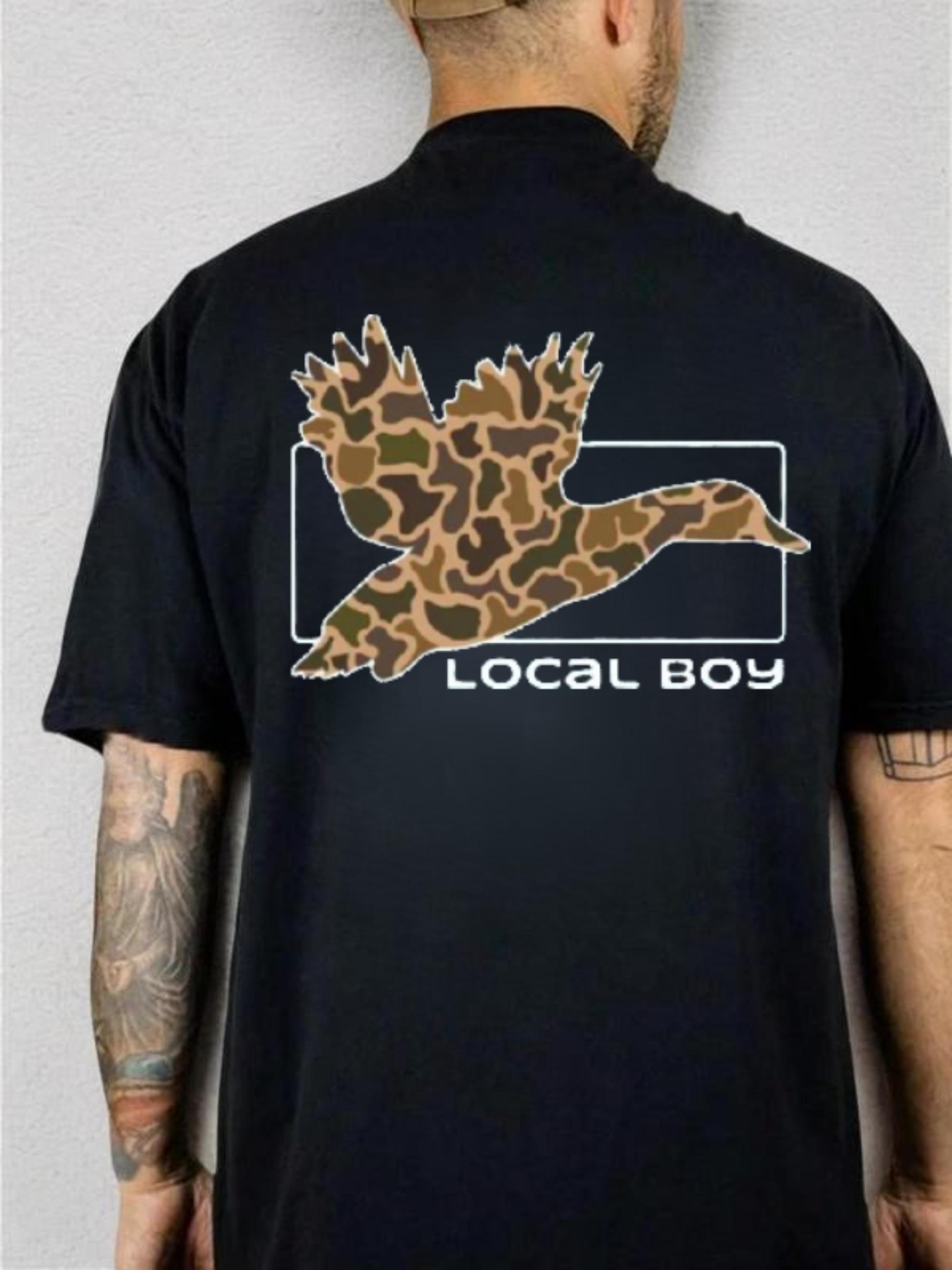 Duck Camo T-shirt, Local Boy Duck Hunting Shirt Unique Design, Mallard Duck Hunting T-shirt