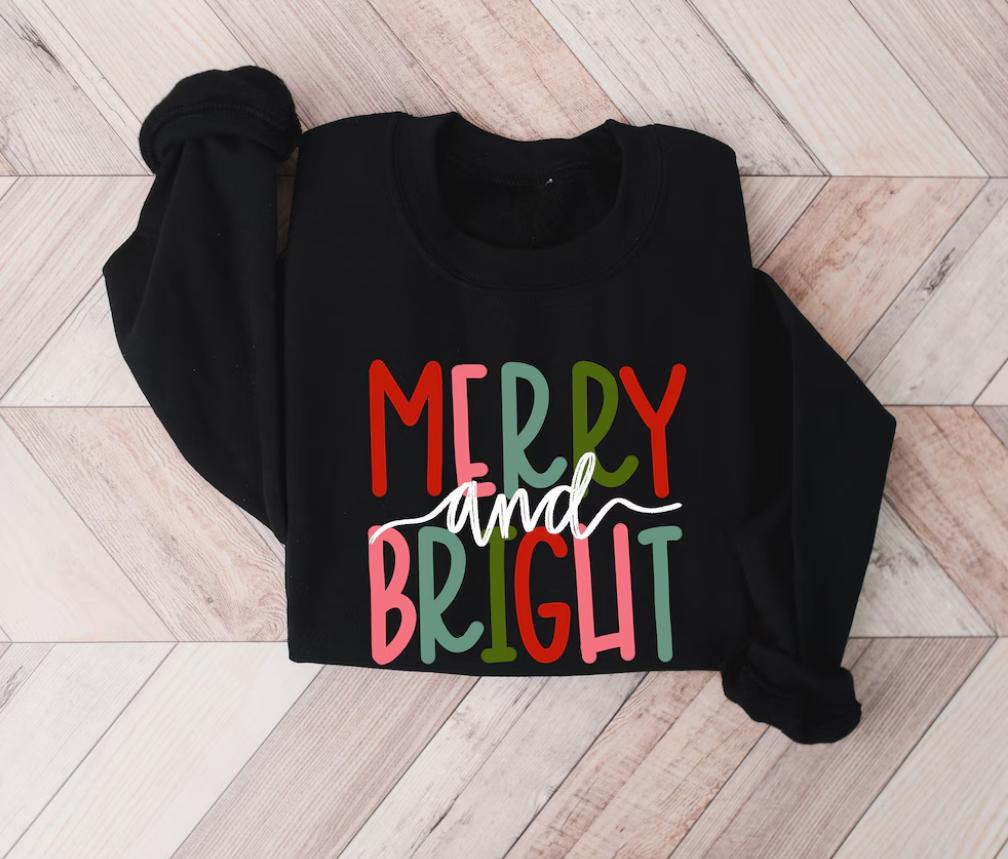 Merry and Bright Sweatshirt, Christmas Sweatshirt, Family Christmas Sweatshirt, Christmas Sweatshirts for Women, Merry Christmas Sweatshirt, Gift for Her/him, Gift for Friend