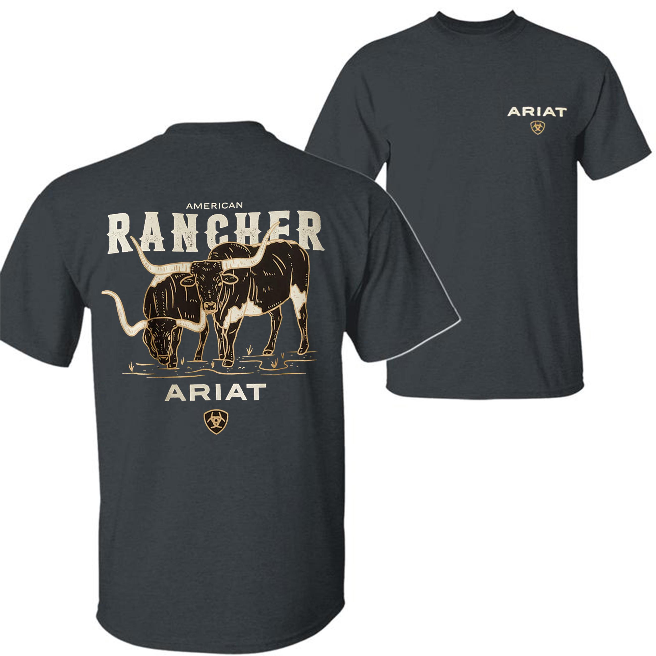 Ariat American Rancher 2 Sided T-Shirt, Basic Vintage T-Shirts for Men and Women