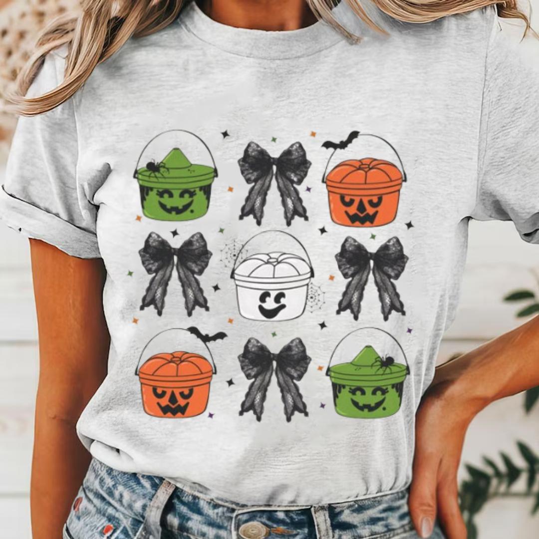 Coquette Halloween Boo Buckets T-Shirt, Retro Halloween Tee, Ghost Witch Pumpkin, Trick Or Treat Shirt, Spooky Shirt