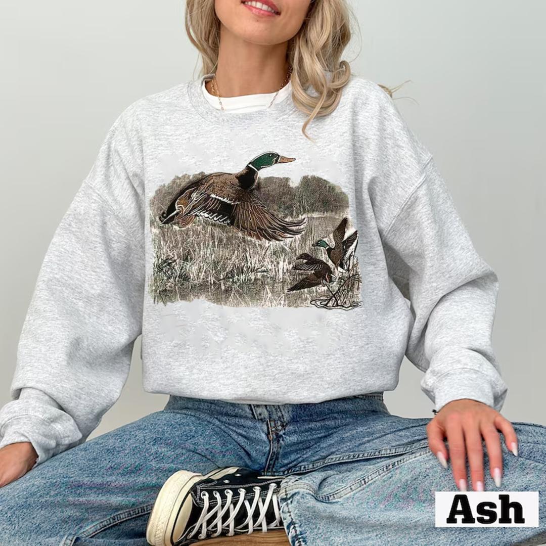 Vintage Duck Sweatshirt, Duck Hunting Sweatshirt, Animal Lover, Mallard Sweatshirt, Duck Camo, Retro Fall Sweater