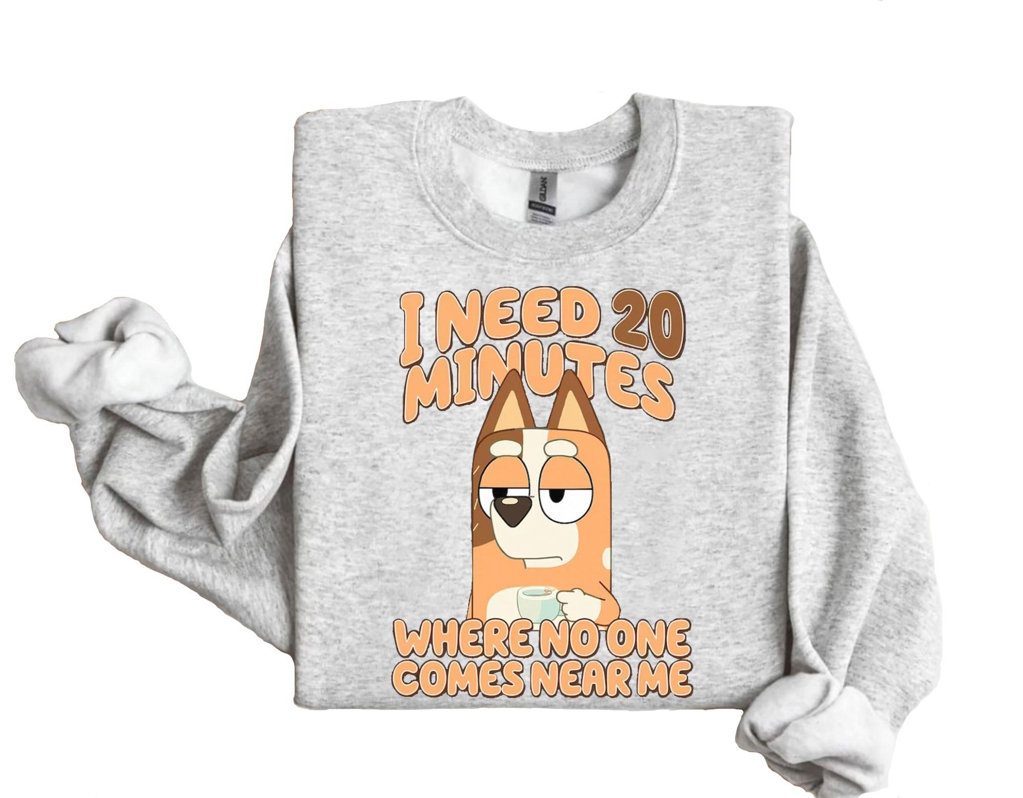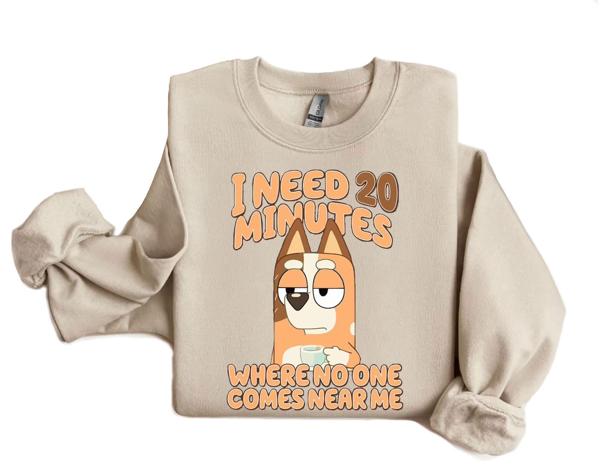 Bluey Need 20 Minutes Sweatshirt, Bluey Dad, Chilli Mom Shirt, Funny Bluey Cartoon Hoodie, Bluey Gift, Bluey Mum TShirt, Bluey Shirts, Sweatshirt, Hoodie