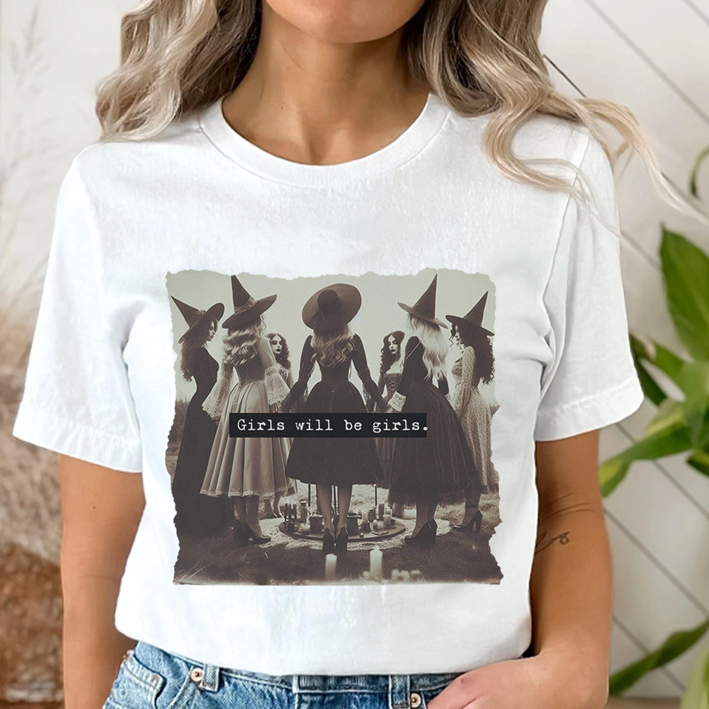 Girls Will Be Girls Feminist Witchy Shirt, Practical Magic Witchy Summer Shirt, Equal Rights Gift, Burn the Patriarchy, Feminist Apparel, Unisex T-Shirt, gifts for Women, Short Sleeve Tee Shirt, Sweatshirt, Hoodie