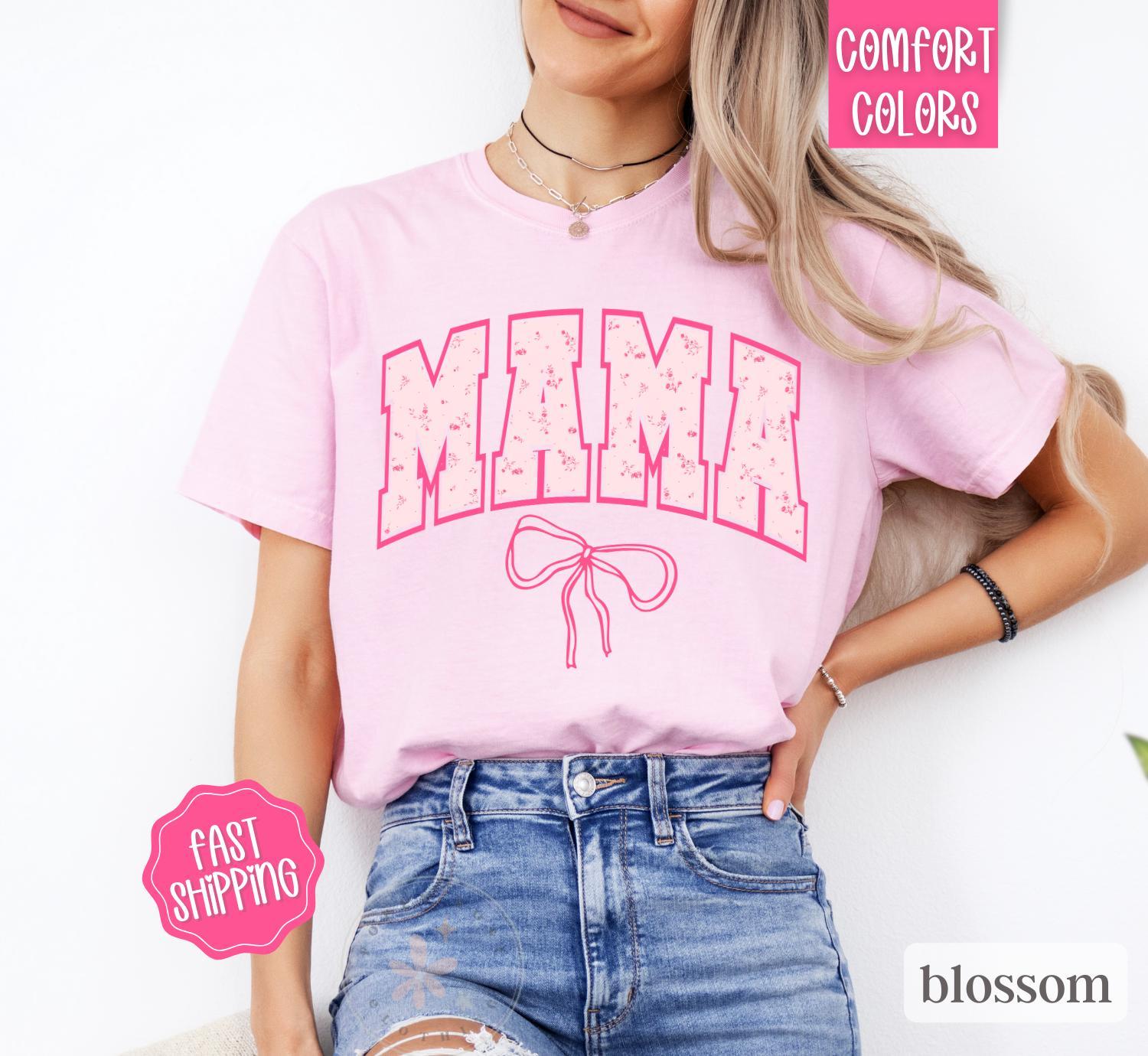 Pink Coquette Mama Shirt s, Mother's Day Gift for Mom, Mama Floral Letters Shirt, Cute Mom Bow Shirt, Oversized Mama Tshirt, Sweatshirt, Hoodie