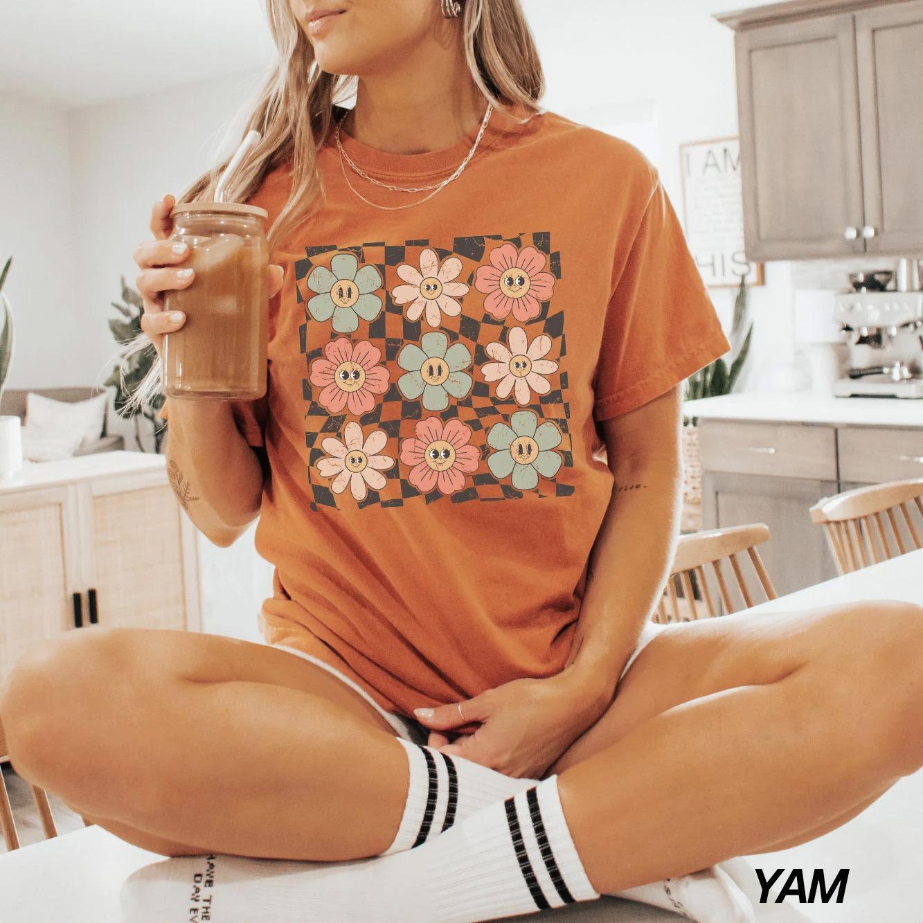 Checkered Flower Shirt, Retro Flowers T Shirt, Summer Shirt, Flower Shirt, Trendy Summer Graphic Tee, s Shirt, Sweatshirt, Hoodie
