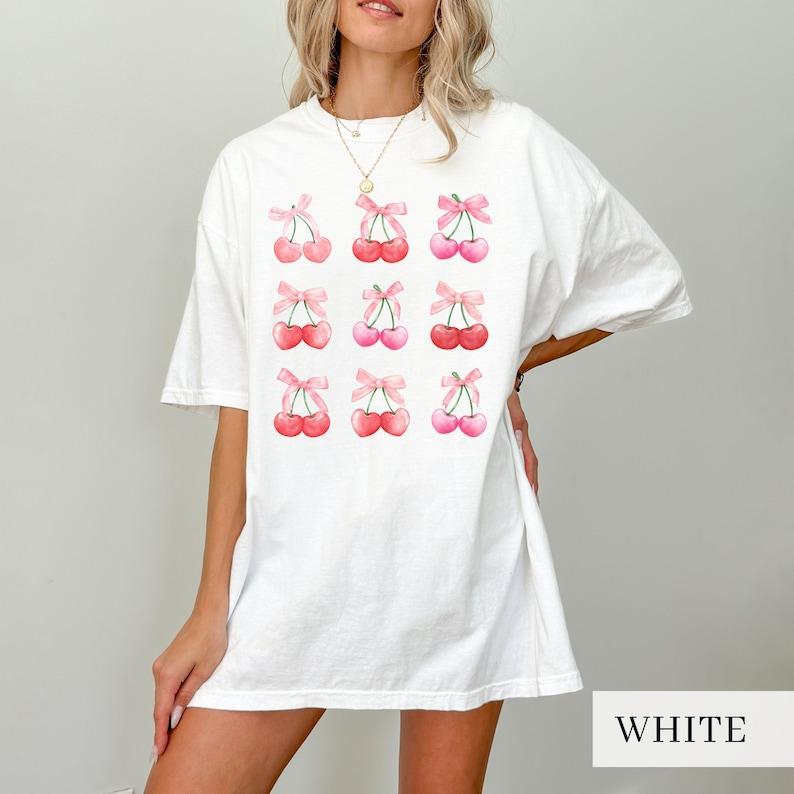 Pink Cherries Shirt, Y2K Coquette Cherry and Bow Trendy Tshirt, Coquette Ribbon Clothing, Soft Girl Era Shirt, Gift for Women, Sweatshirt, Hoodie