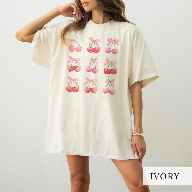 Pink Cherries Shirt, Y2K Coquette Cherry and Bow Trendy Tshirt, Coquette Ribbon Clothing, Soft Girl Era Shirt, Gift for Women, Sweatshirt, Hoodie