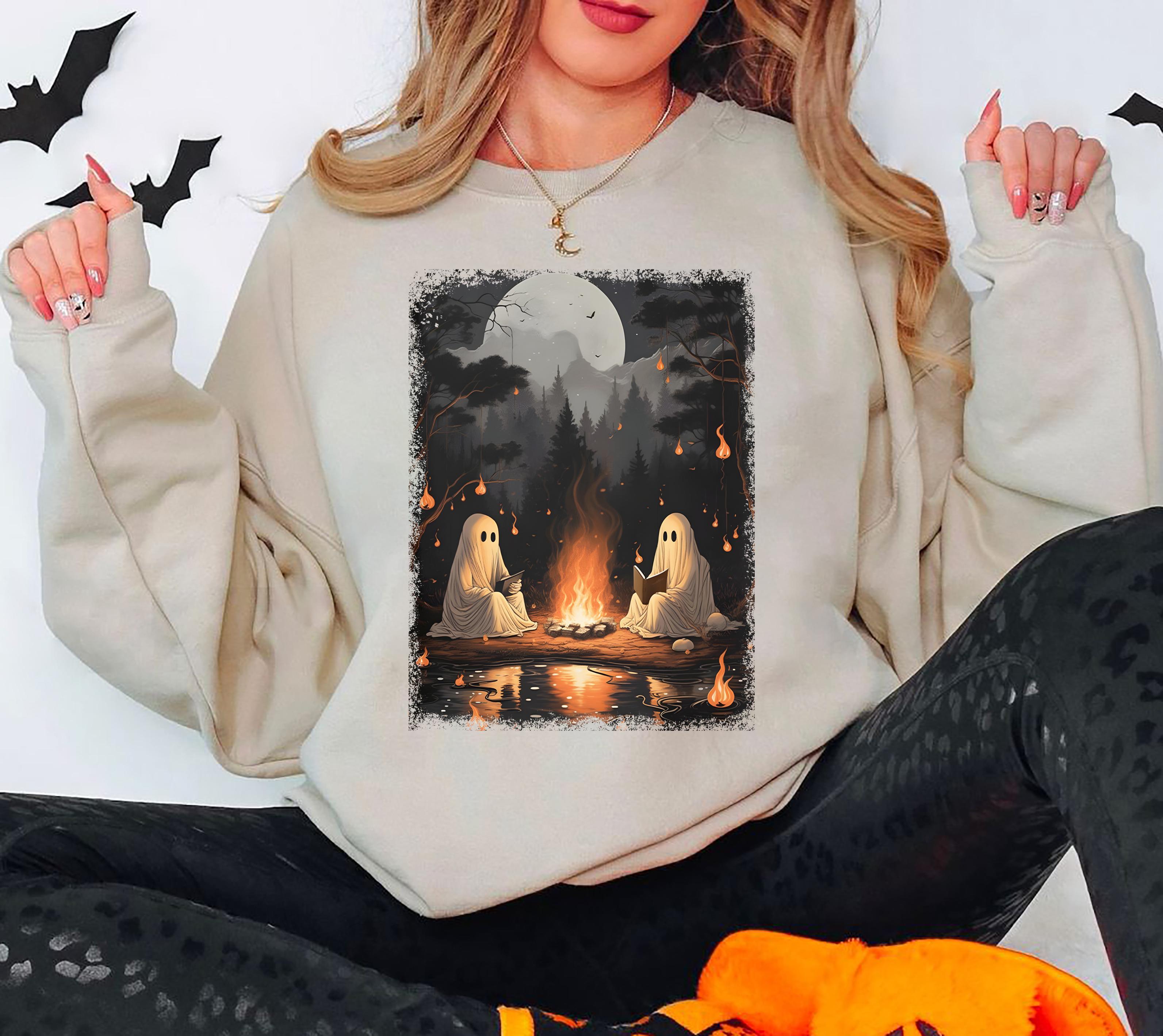 Vintage Ghost Book Camping Shirt, Retro Ghost Sweatshirt, 90s Halloween Shirt, Ghost Camping Sweatshirt, Ghost Reading Shirt, Halloween Gift For Book Lover, Summerween T-Shirt, Camping Tee, Sweatshirt, Hoodie