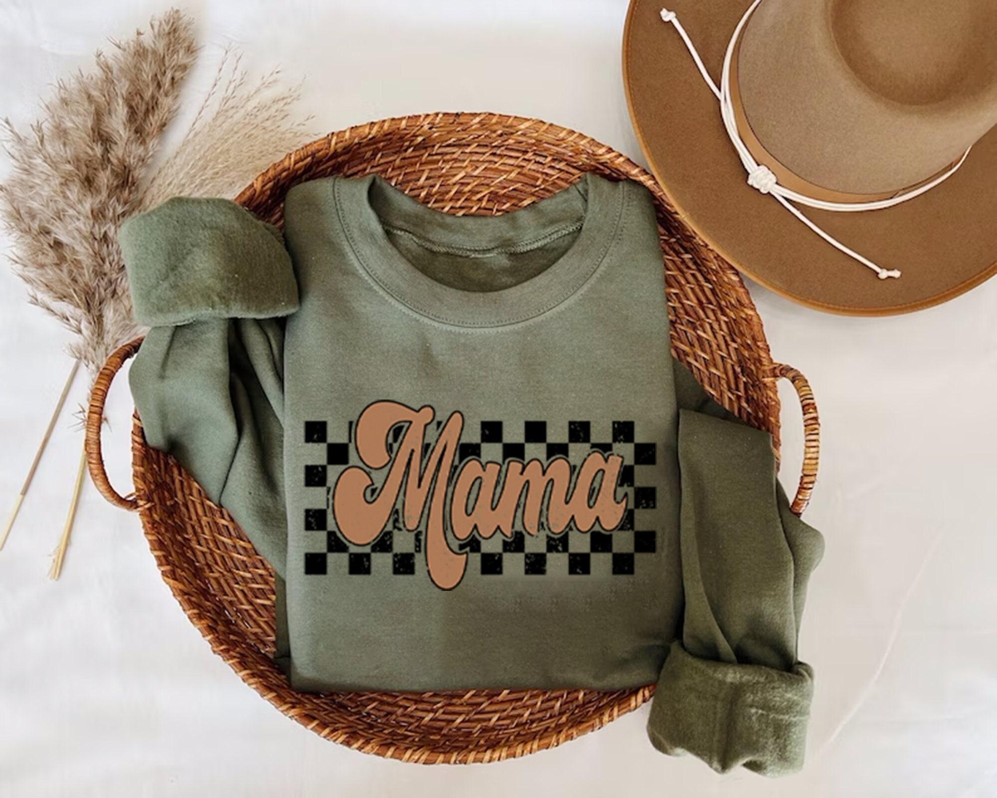 Retro Checkered Mama Sweatshirt, Varsity Mom Crewneck, 2024 Mother's Day Gifts, Retro Mama Shirt, Mama Shirt, Mom Sweatshirt, Sweatshirt, Hoodie