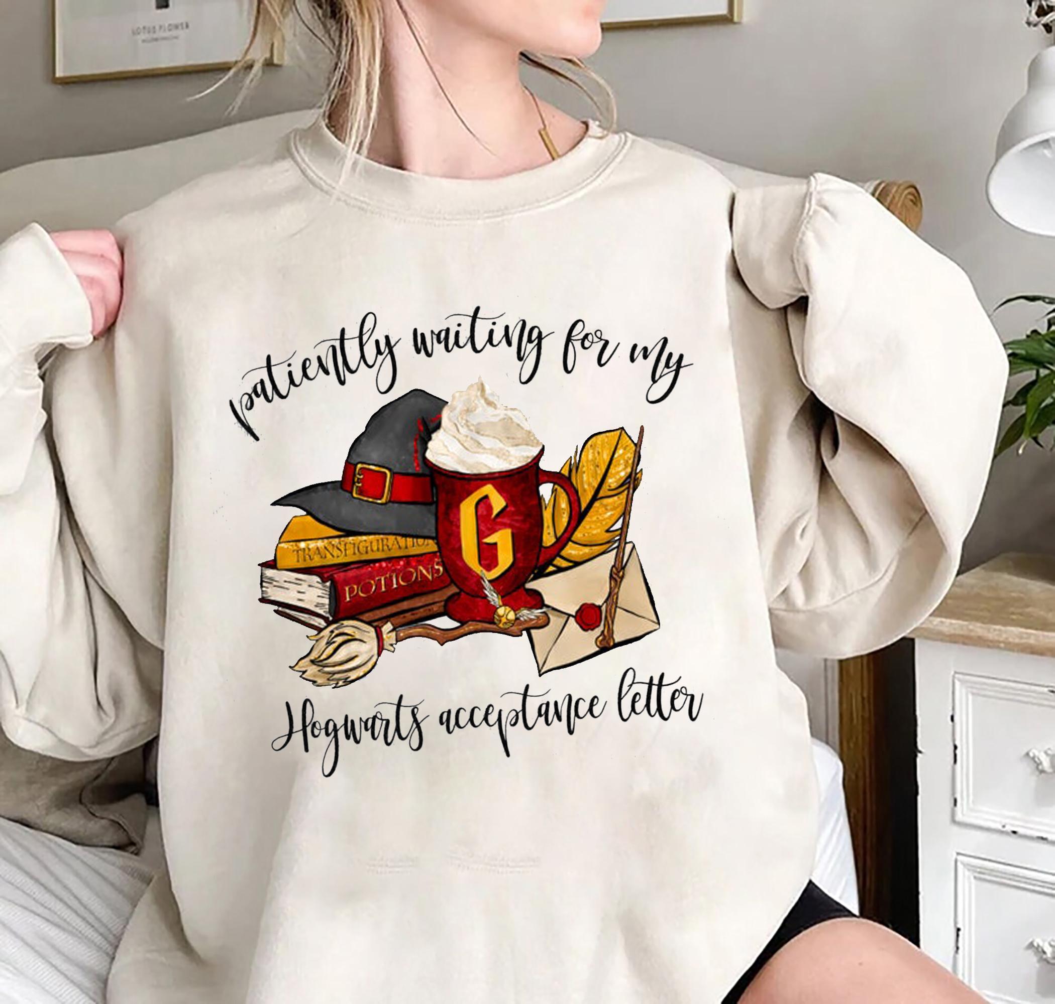 Gryffindor House Sweatshirt, Patiently Waiting on my Hogwarts Acceptance Letter Shirt, Hogwarts School Sweatshirt, Witch Halloween Sweatshirt, Gryffindor Shirt, Sweatshirt, Hoodie