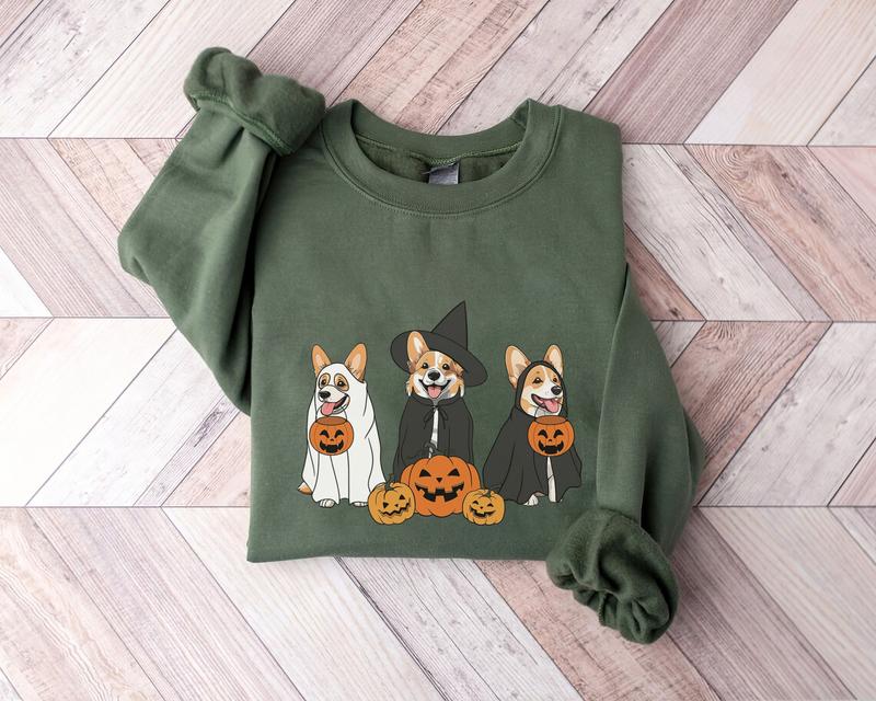 Ghost And Witch Corgi Halloween Sweatshirt, Corgi Pumpkin Dog Lover Halloween Sweatshirt, Halloween Season Graphic Unisex Sweater For Men And Women Womenswear Tops