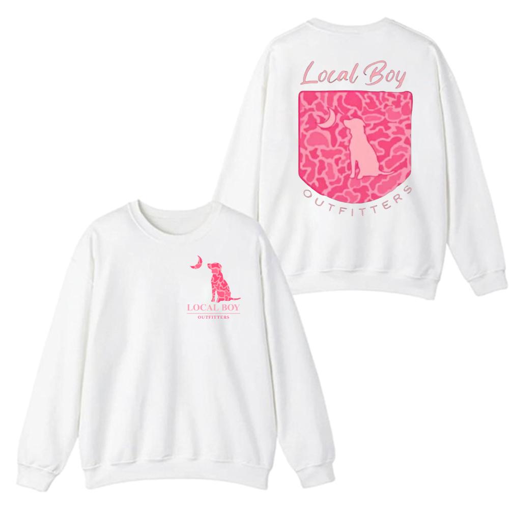Local Boy Outfitters Dog And Moon Pink Flag 2 Sides Hoodie Sweatshirt T-Shirt, Hunting Shirt, Casual Unisex Shirts, Funny Shirt, Hoodie For Men, Women, Full Color