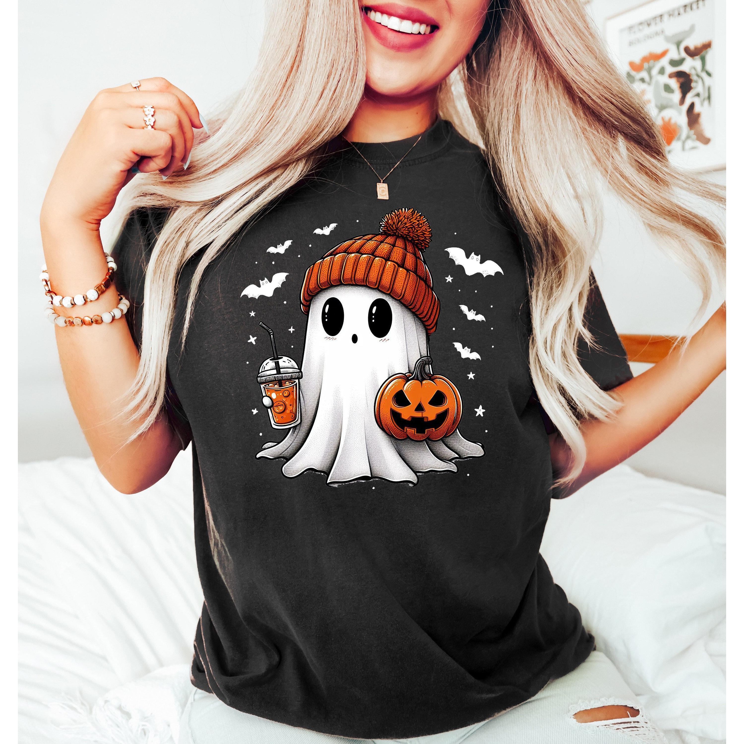 A collection of cute and spooky coffee-themed shirts perfect for Halloween