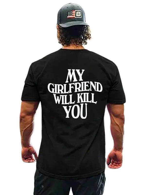 My Girlfriend Will Kill You Shirt, Funny Gifts For Him, I Love My Girlfriend, Gift For Boyfriend From Girlfriend, Couple Shirt For Valentine Day, Couple T Shirt, Unisex T-Shirt, Gifts For Him, Gift For Boyfriend, Short Sleeve Tee Shirt Cotton Menswear, Sw