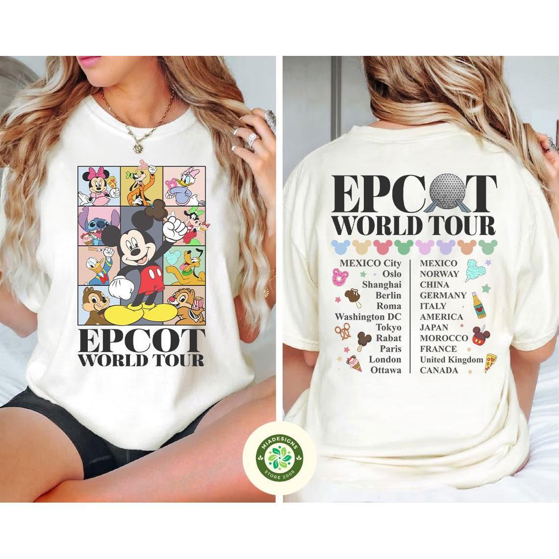Two-sided Mickey & Friends Epcot World Tour Shirt, Drink Around The World, Epcot food and wine festival 2024 shirt, Disnnney Epcot Trip shirts